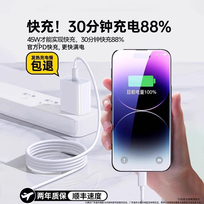 45W快充 3C认证适用苹果17充电器头iphone手机15pro插头14原max数据线16装 13ipad一套xr PD认证快充由