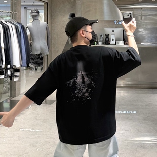 复古做旧印花宽松青年帅气半袖 潮T T恤男ins美式 潮牌春夏重磅短袖