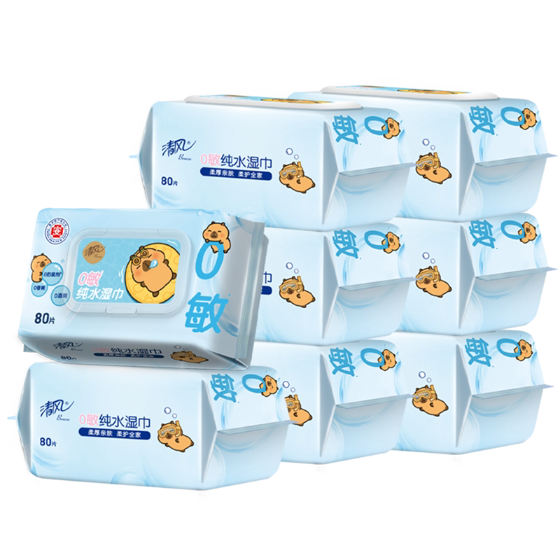 整箱男女卫生湿纸巾家用 清风湿巾EDI纯水80片4大包可擦私处家庭装
