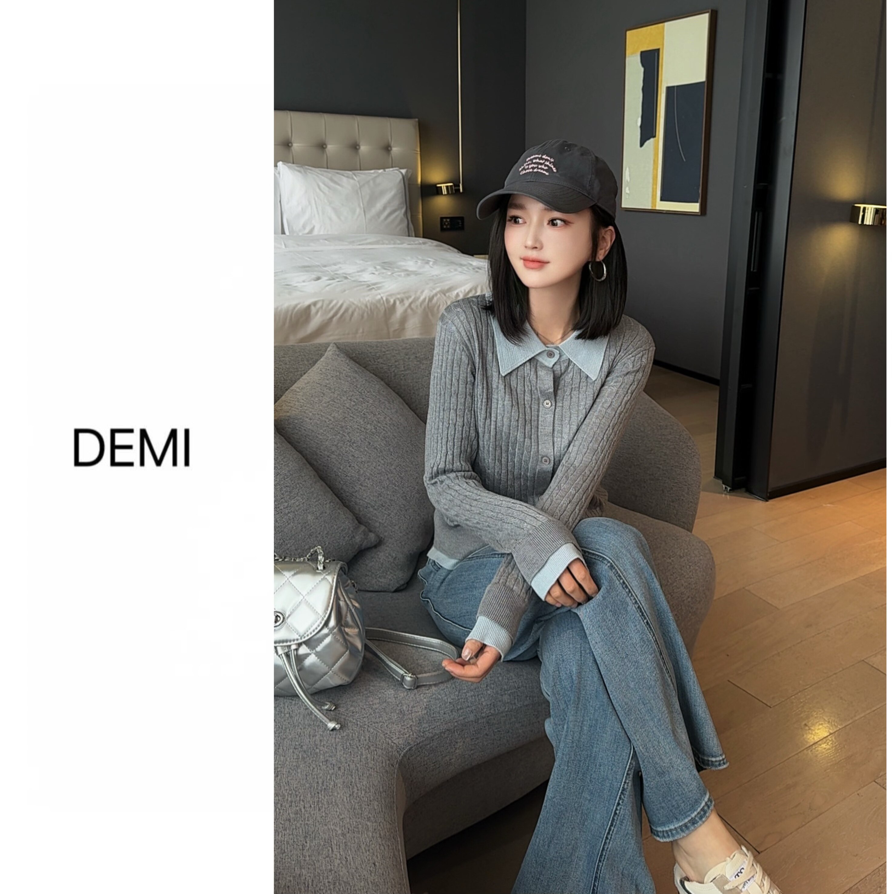 早春新款 韩系宽松减龄学院派POLO针织上衣F1691 RUILI定制 MISS由