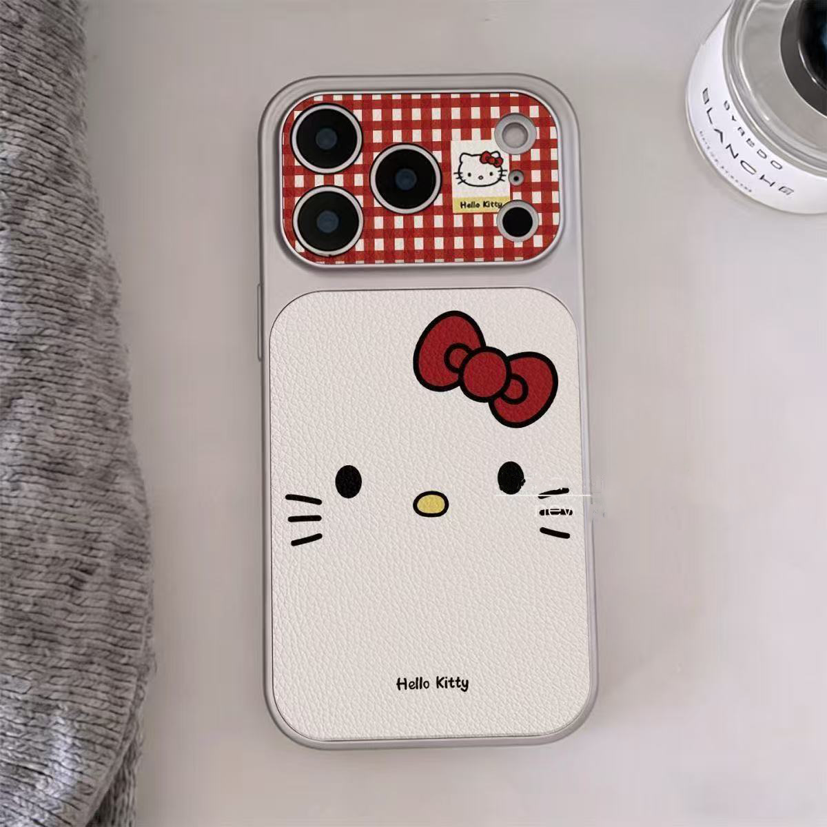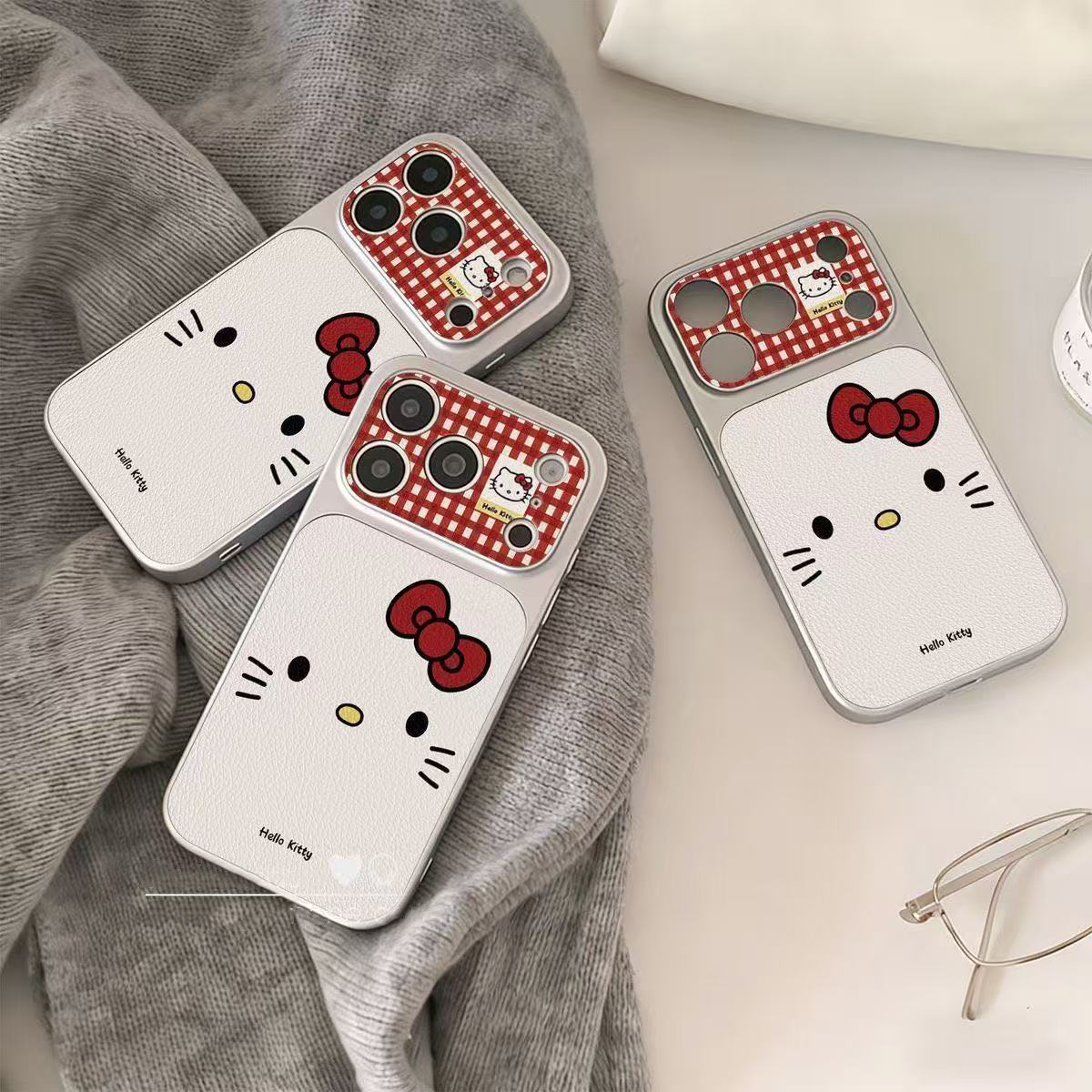 格纹kitty猫适用苹果17手机壳新款 高级感14 12卡通保护壳创意 iPhone16promax保护套可爱ip15pro防摔壳个性