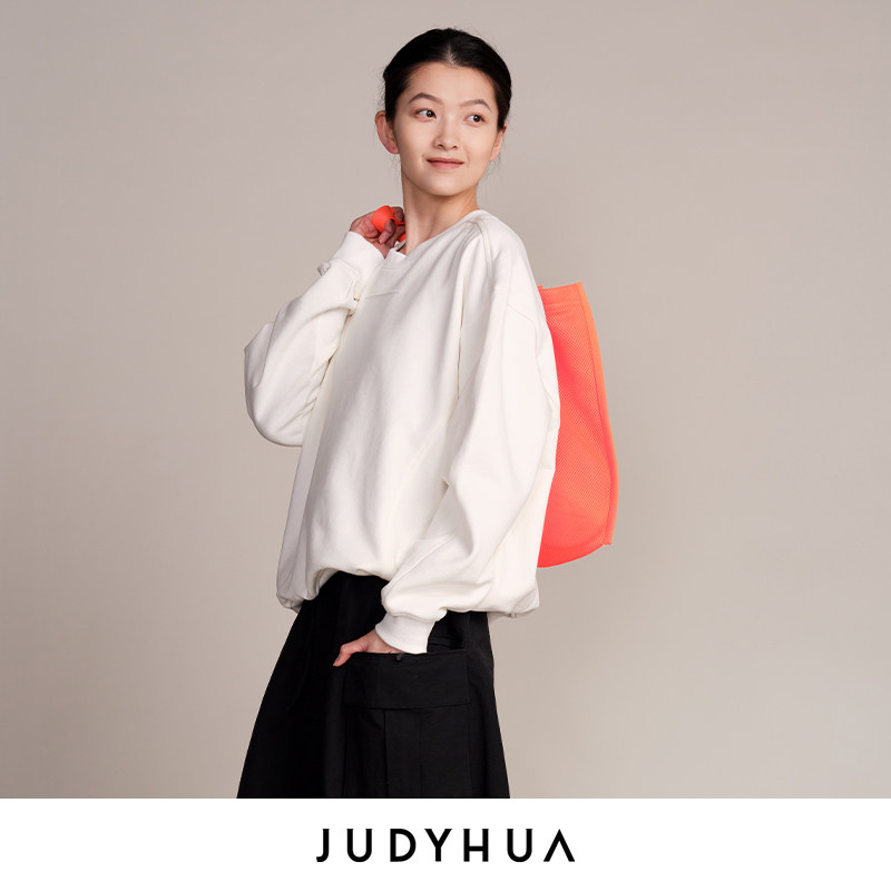 Judy清简时序春季 纯色结构纯棉休闲圆领卫衣白 For