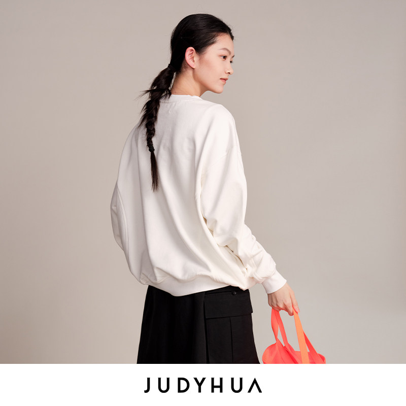 Judy清简时序春季 纯色结构纯棉休闲圆领卫衣白 For由