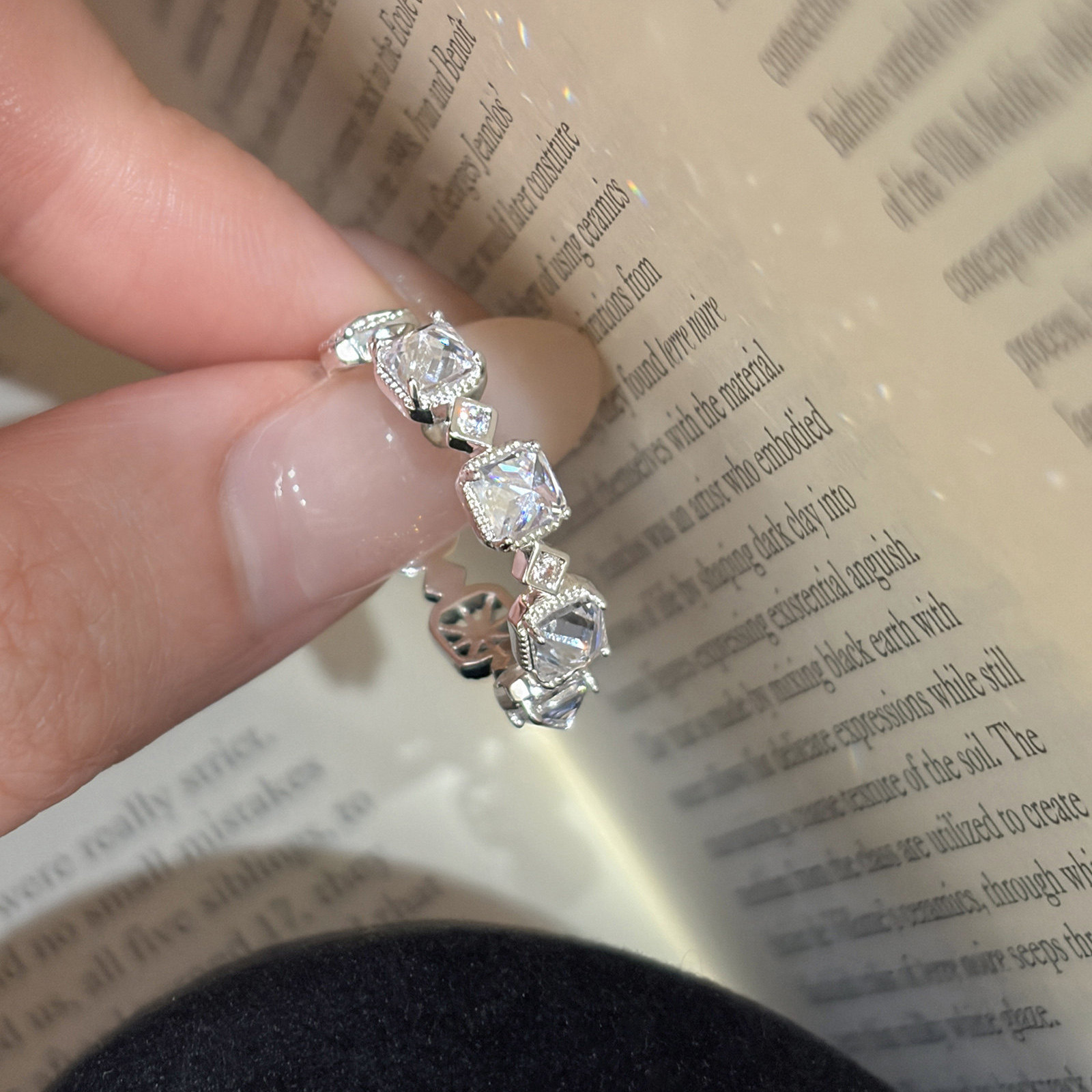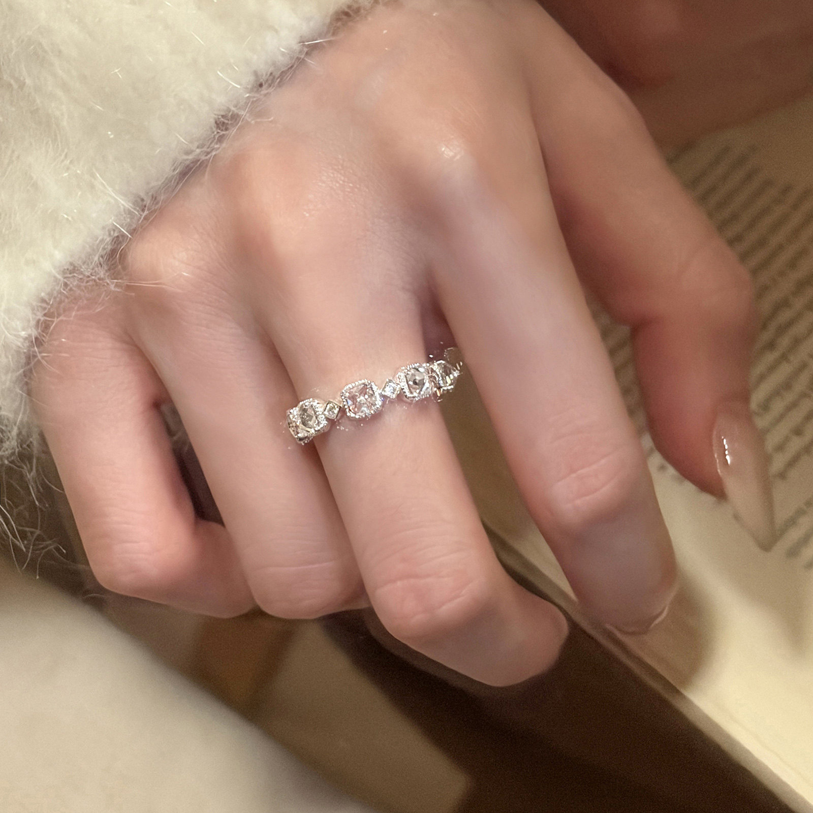气质食指戒小众设计指环 S925银超闪方糖锆石戒指女轻奢高级感时尚