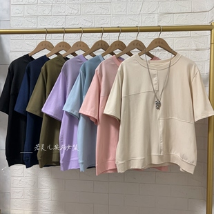 T恤大码 上衣 拼接简约百搭圆领短袖 若灵儿宽松休闲遮肉显瘦女装