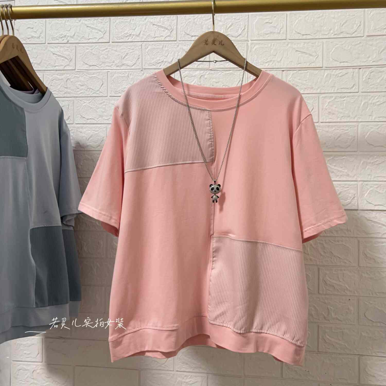 为您提供商品T恤大码 上衣 拼接简约百搭圆领短袖 若灵儿宽松休闲遮肉显瘦女装的详细介绍,