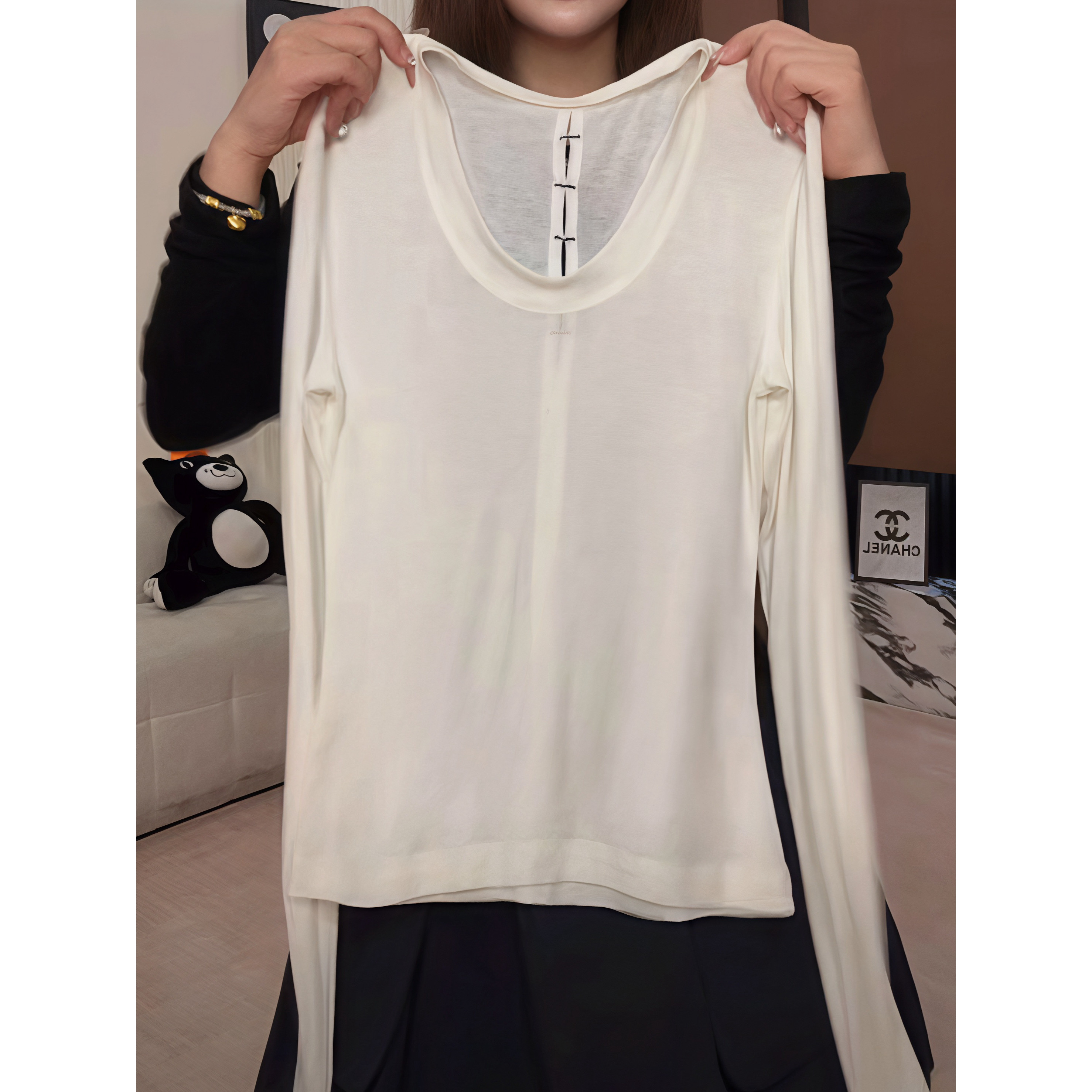 纯色后背镂空U领薄款 T恤女2026春夏新款 休闲百搭显瘦打底衫 长袖由