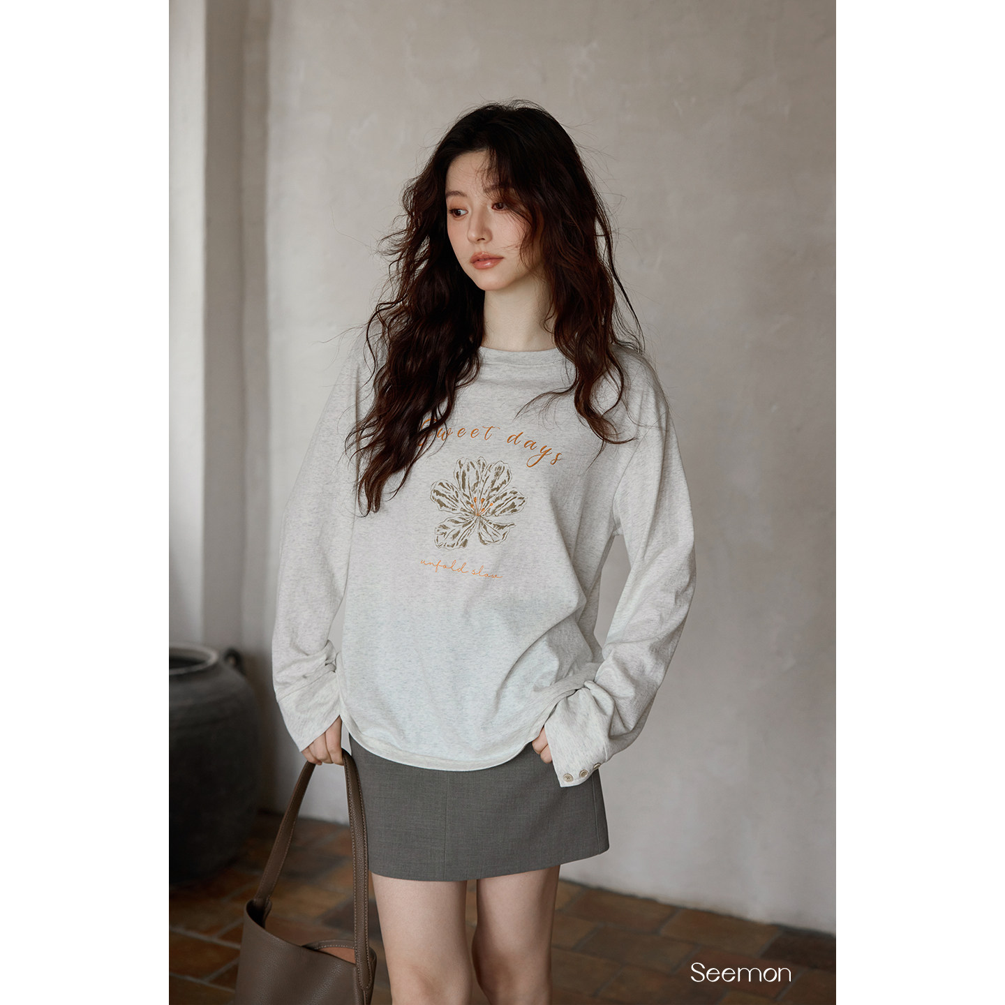 韩系气质上衣宽松小众慵懒风独特漂亮长袖 t恤女 春季 夕蒙2026新款由