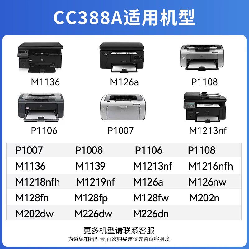 388a晒鼓MFP 适用惠普CC388A硒鼓m1136 m126a 1007墨粉盒M1213nf 1216打印机墨盒88a p1008 HP1108 p1106由