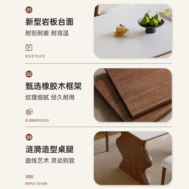 为您提供商品政府补贴岩板涟漪餐桌椅组合现代简约家用小户型奶油风长方形的详细介绍,