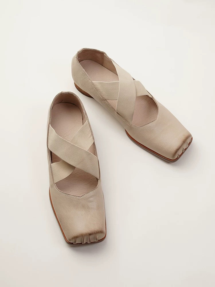 282 芭蕾舞鞋 2.5厘米头层水洗马皮猪鼻头交叉经典