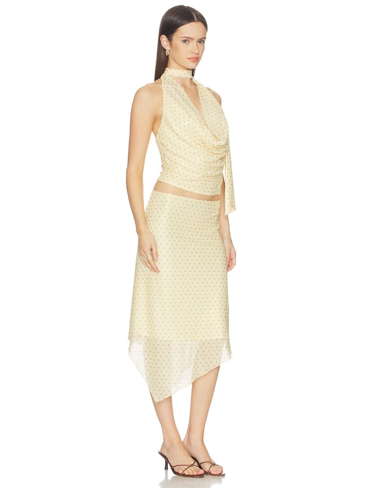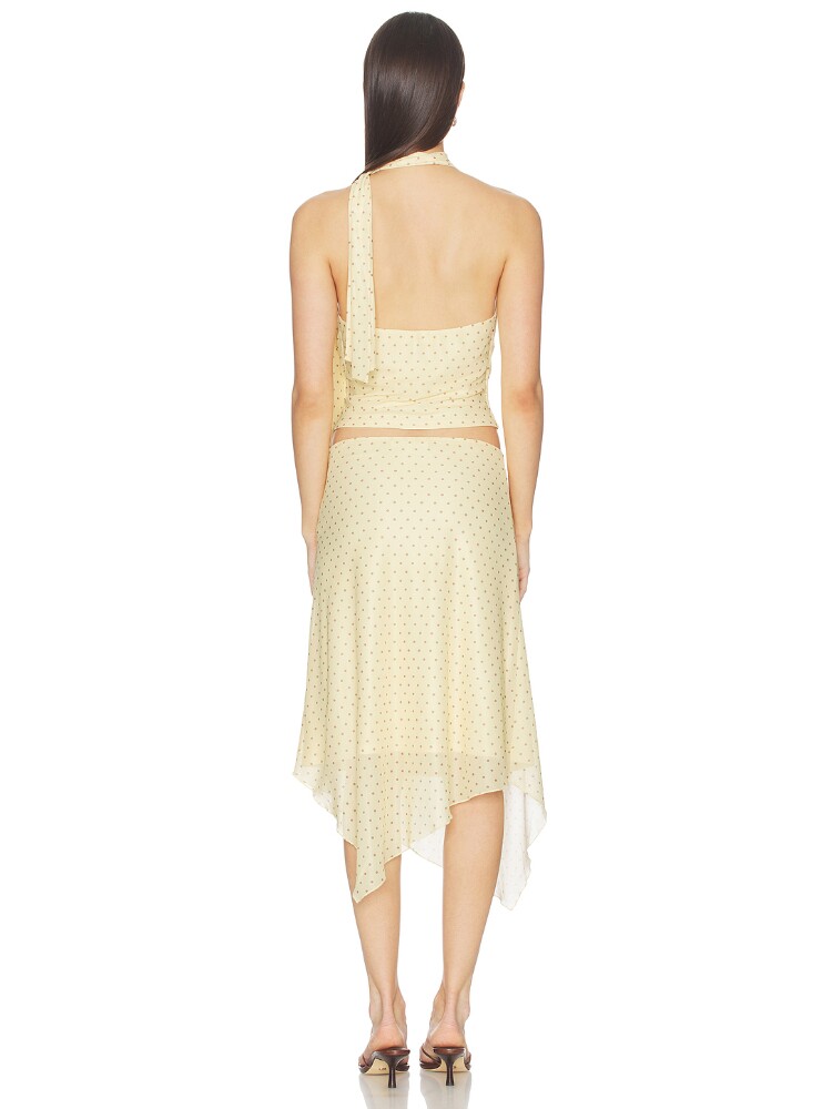 新品 MORE TO COME米白色波点挂脖吊带半身裙套装 REVOLVE 春季由