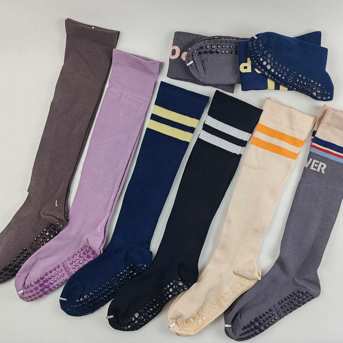 四季 女士纯棉长筒袜压缩及膝小腿袜防滑瑜伽运动高筒袜子无骨袜 款