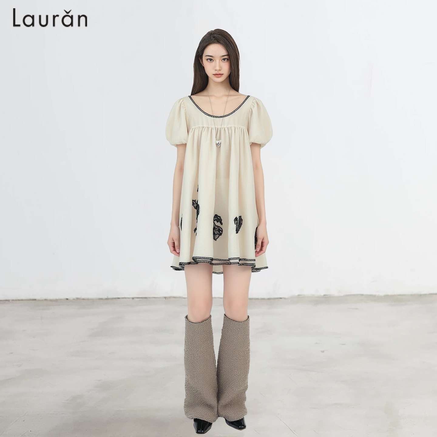 绣花拼接雪纺压褶宽松针织早春漂亮连衣裙 MOVEUP幻走2026春夏新品