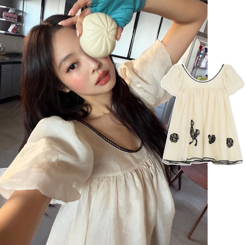 为您提供商品jennie同款 连衣裙女夏季 轻薄娃娃裙叠穿短袖 上衣 杏色甜美风泡泡袖的详细介绍,