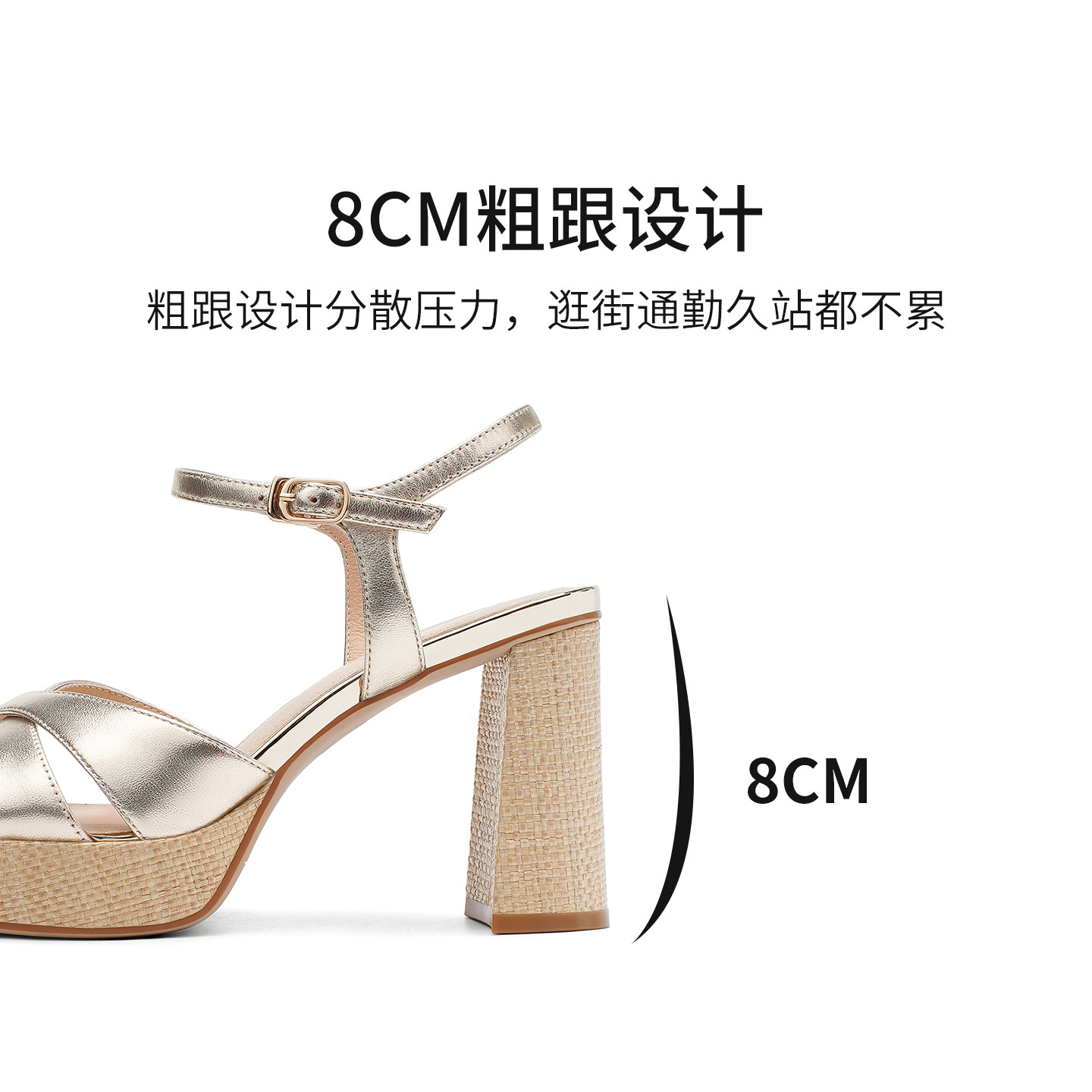 哈森时尚 百搭通勤单鞋 2026夏新款 HM267143 一字带粗跟高跟露趾凉鞋由