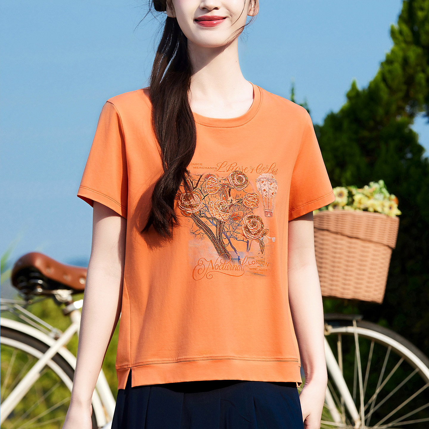 体恤衫 纯棉重工艺绣花t恤女夏装 藏肉短袖 宽松大码 2026年时尚 新款