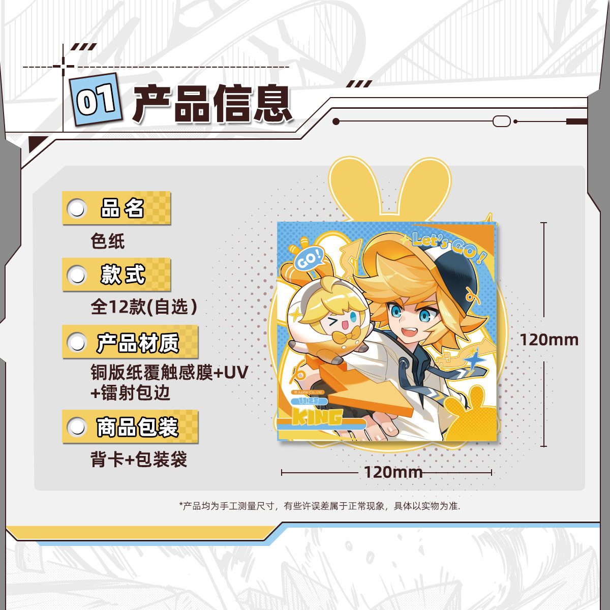 周边 12cm角色方形色纸 凹凸世界官方正版 七创社 裁判球由