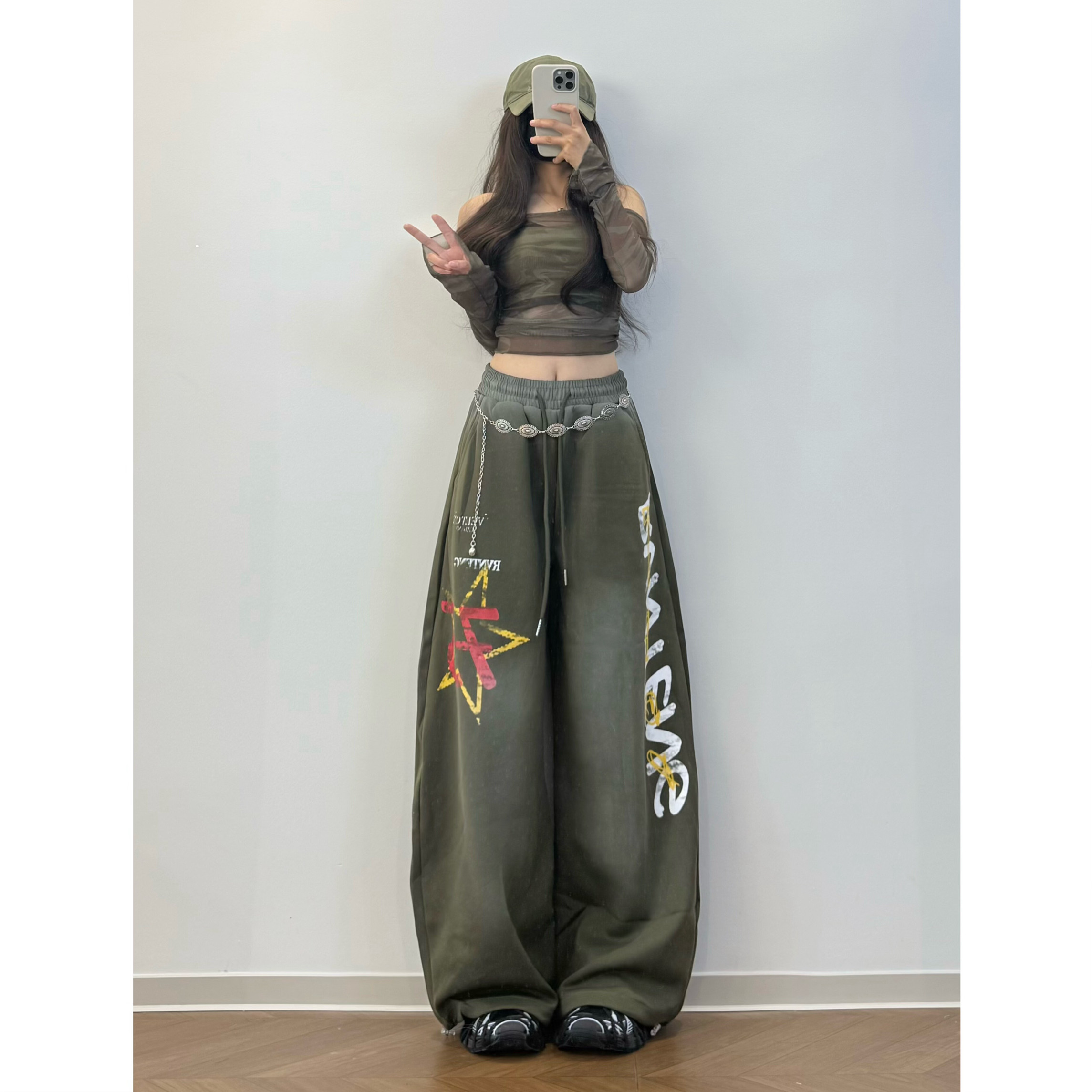 ⭐小红书推荐⭐XXBUNI跳舞运动裤 做旧涂鸦星星绿色弯刀卫裤 女辣妹jazz休闲阔腿裤,所属休闲裤分类,由淘宝网挑选推荐!小红书抖音网红同款!哪里有卖XXBUNI跳舞运动裤 做旧涂鸦星星绿色弯刀卫裤 女辣妹jazz休闲阔腿裤和多少钱质量怎么样✅。