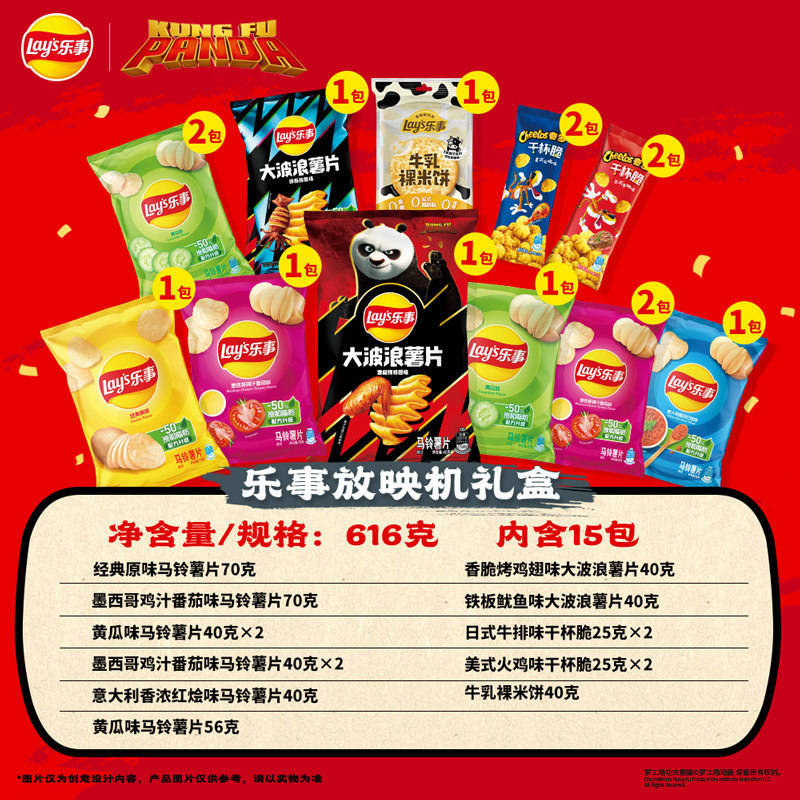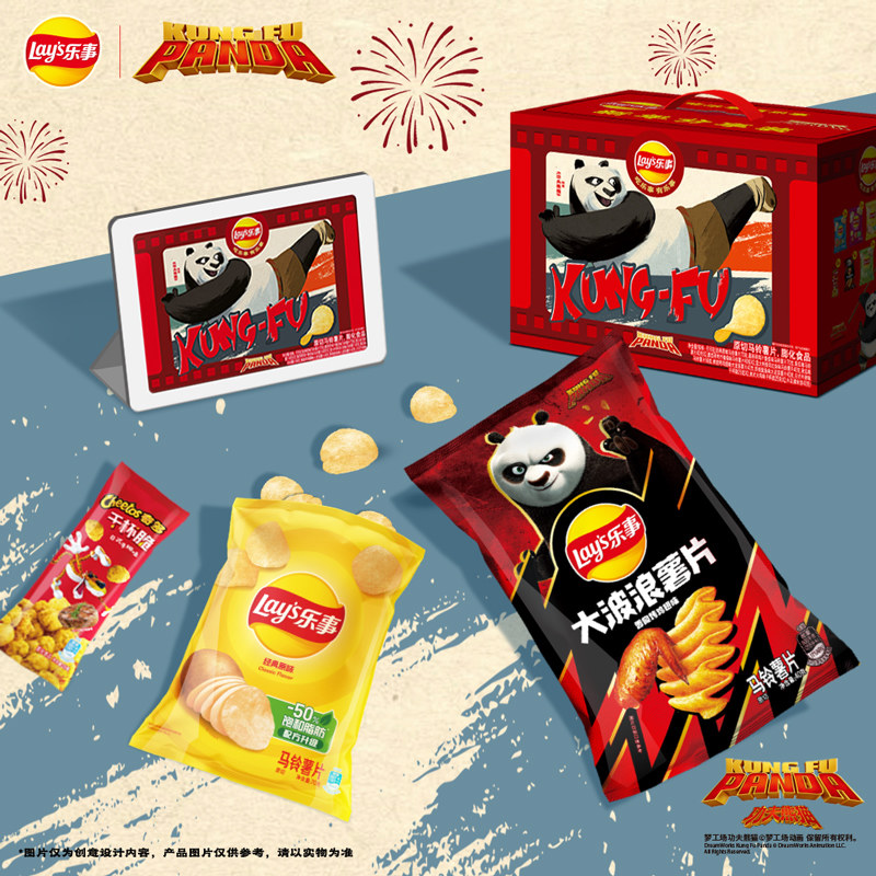 乐事薯片x功夫熊猫IP联名黄金档礼盒616gx1盒送礼休闲小吃零食由