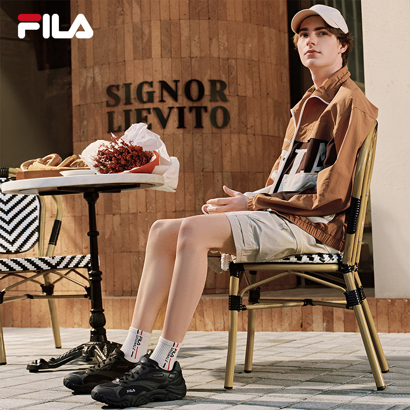 黑色增高运动鞋 珊瑚鞋 复古跑步鞋 2026春新款 FILA斐乐老爹鞋 男鞋由