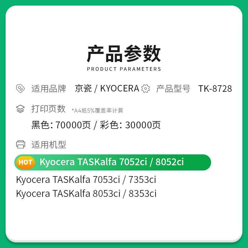 为您提供商品7052 8353ci彩色打印机墨粉盒可加粉大容量 才进适用京瓷TK TASKalfa 7353ci 8053 7053 8728粉盒套装 8052ci的详细介绍,