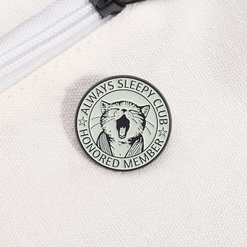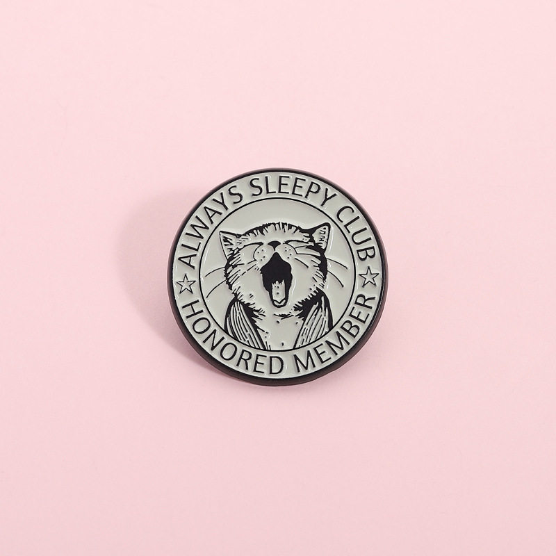 嗜睡小猫打哈欠金属徽章胸针pin猫咪犯困俱乐部萌宠胸章衣服饰品