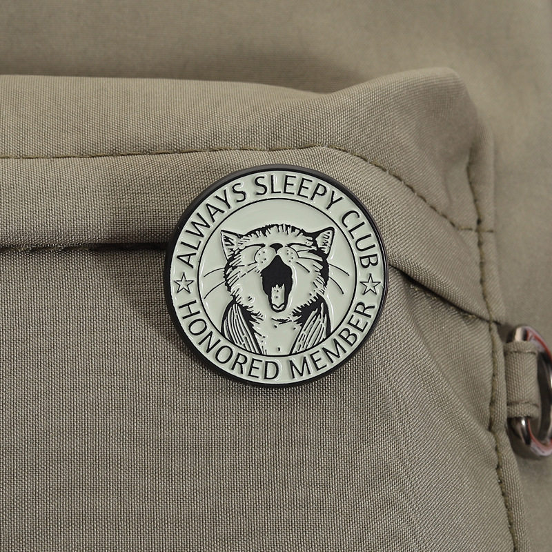 嗜睡小猫打哈欠金属徽章胸针pin猫咪犯困俱乐部萌宠胸章衣服饰品由