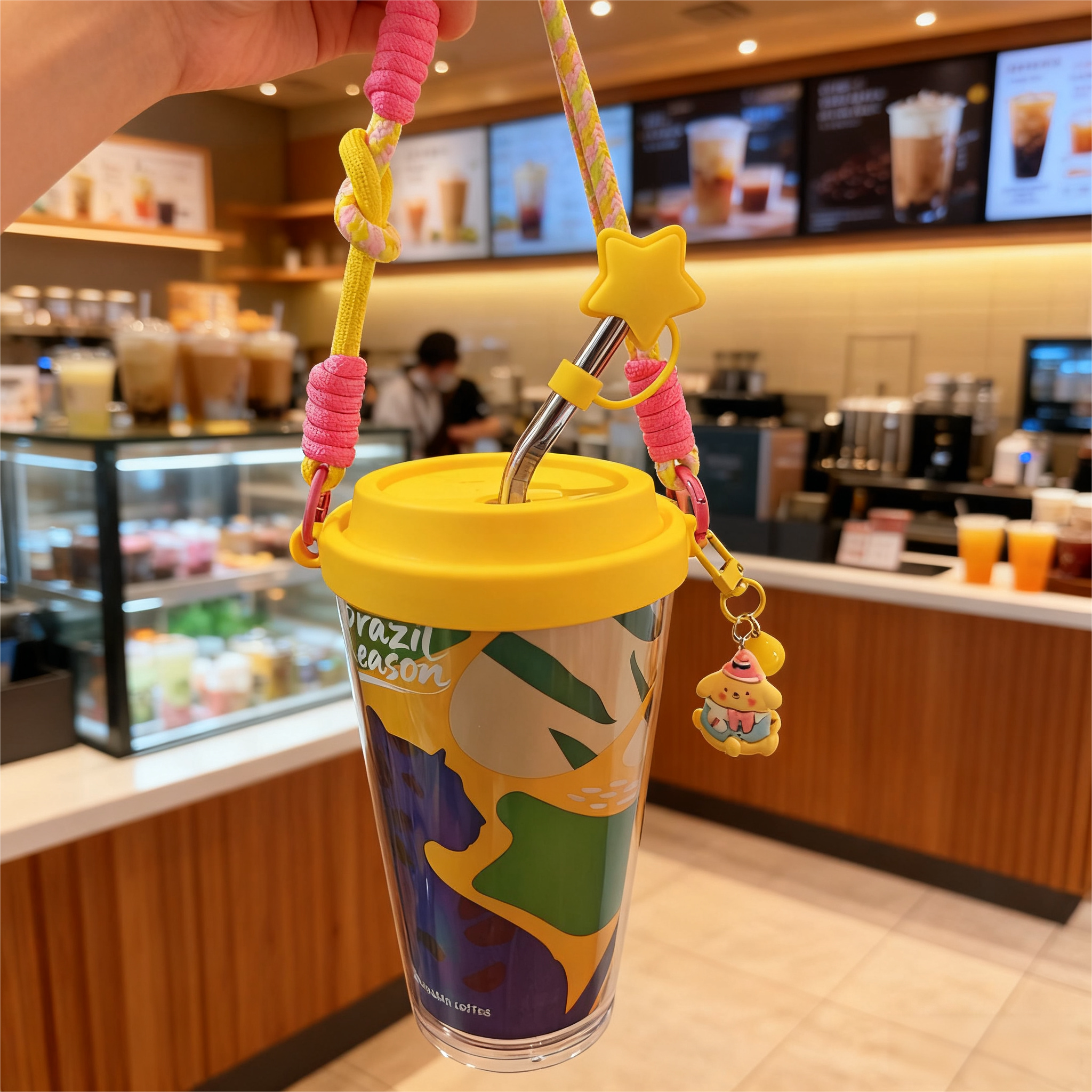 可爱塑料水杯女生高颜值大容量吸管杯子夏双饮学生便携儿童随手杯