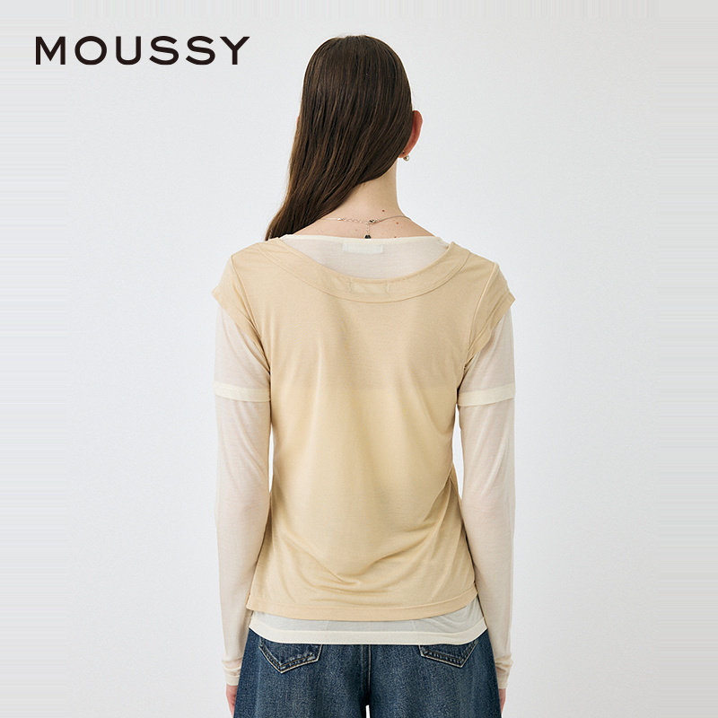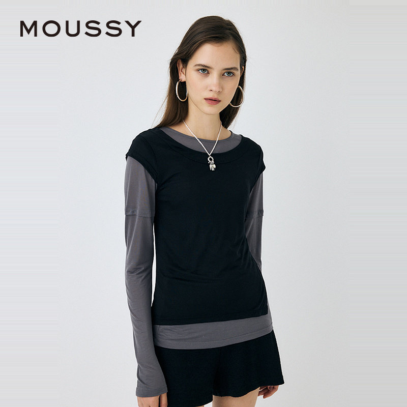 T恤010IA280 2181 长袖 moussy早春优雅双色拼接莱赛尔修身由