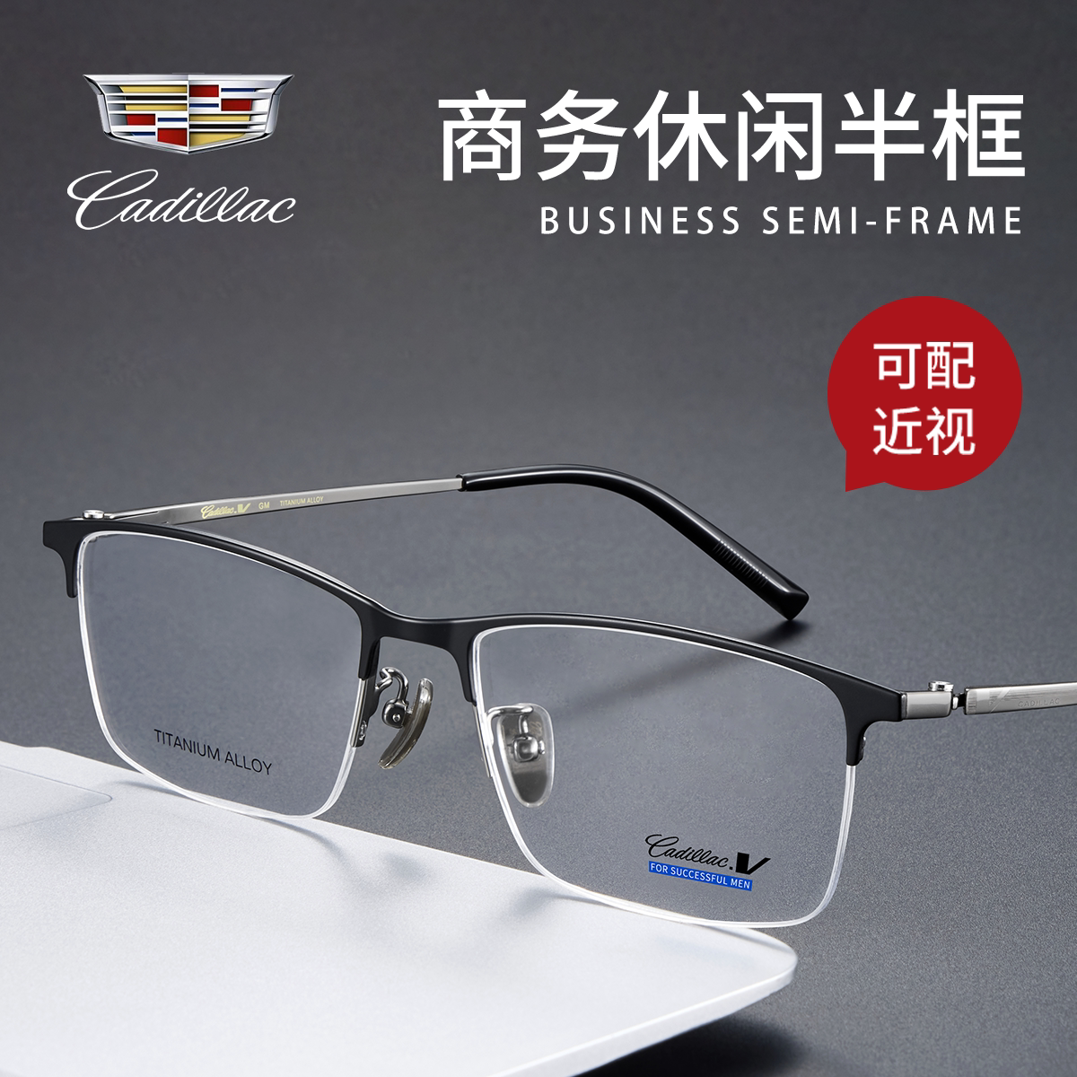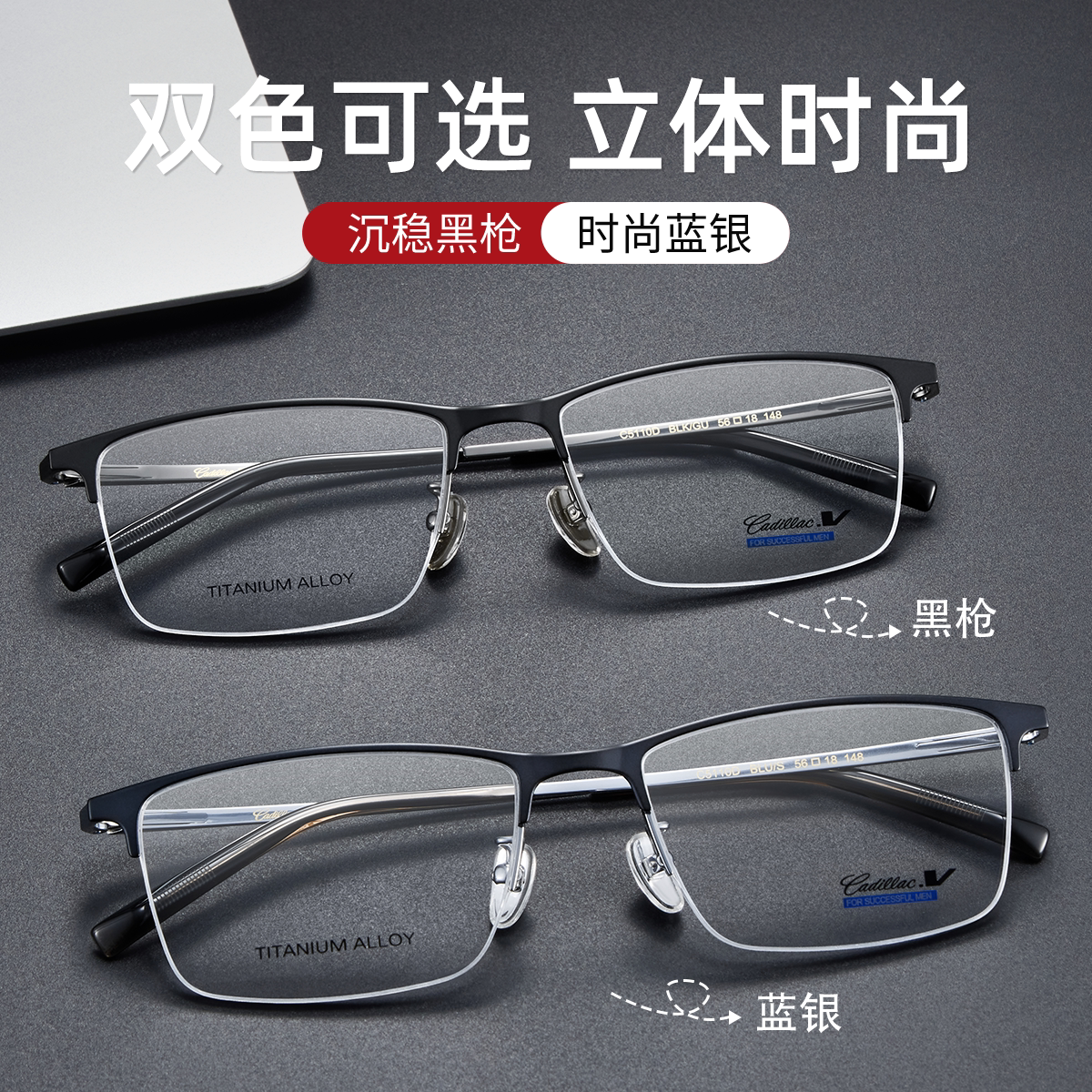 凯迪拉克纯钛半框眼镜架男商务超轻金属细框眼镜黑色方框C5110D