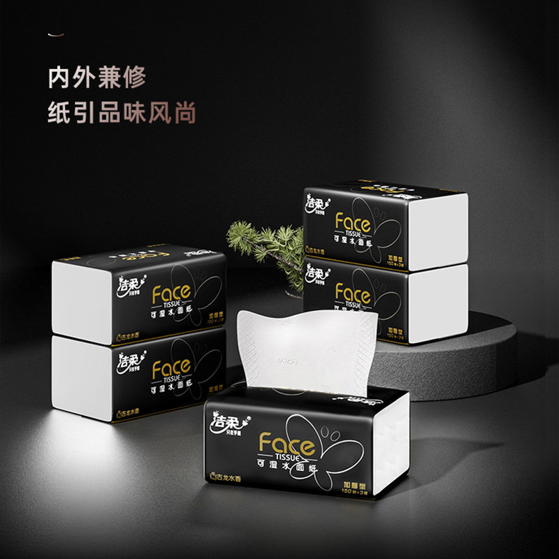 餐巾纸 洁柔抽纸黑Face古龙香纸巾3层450张18包可湿水面巾纸大包装