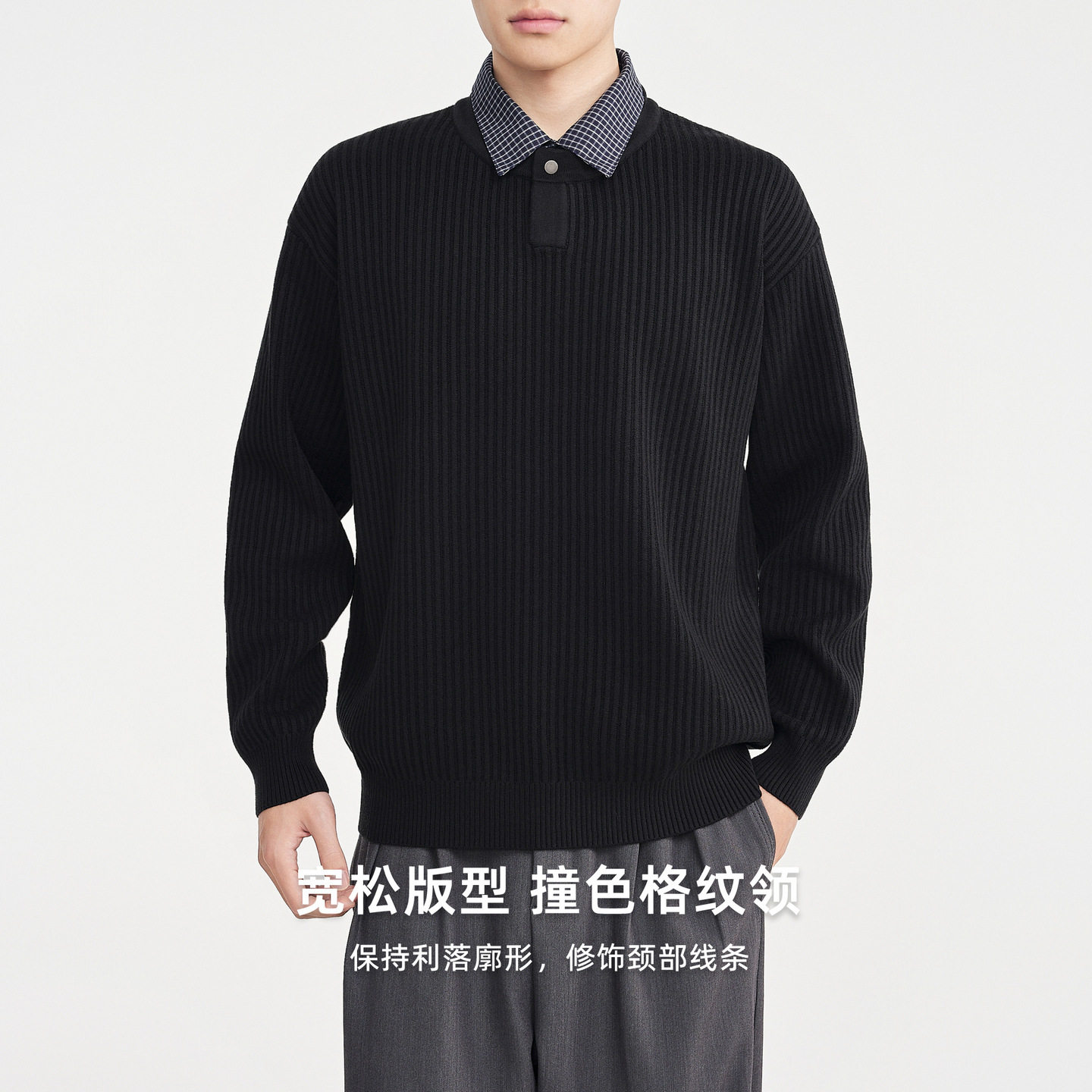 为您提供商品衬衫 墨麦客男装 领毛衣男22213 新款 2025冬季 格纹假两件男士 针织衫的详细介绍,
