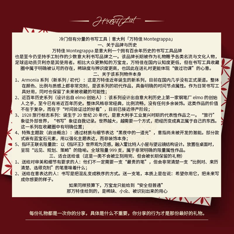 1912意大利「奢华书写工具品牌」Montegrappa签字笔 礼物清单