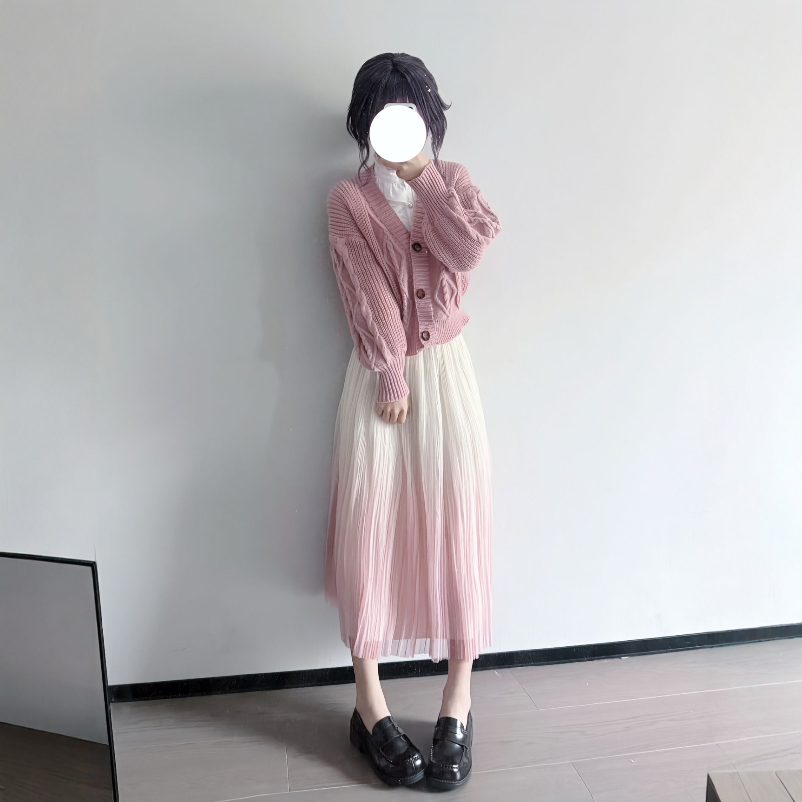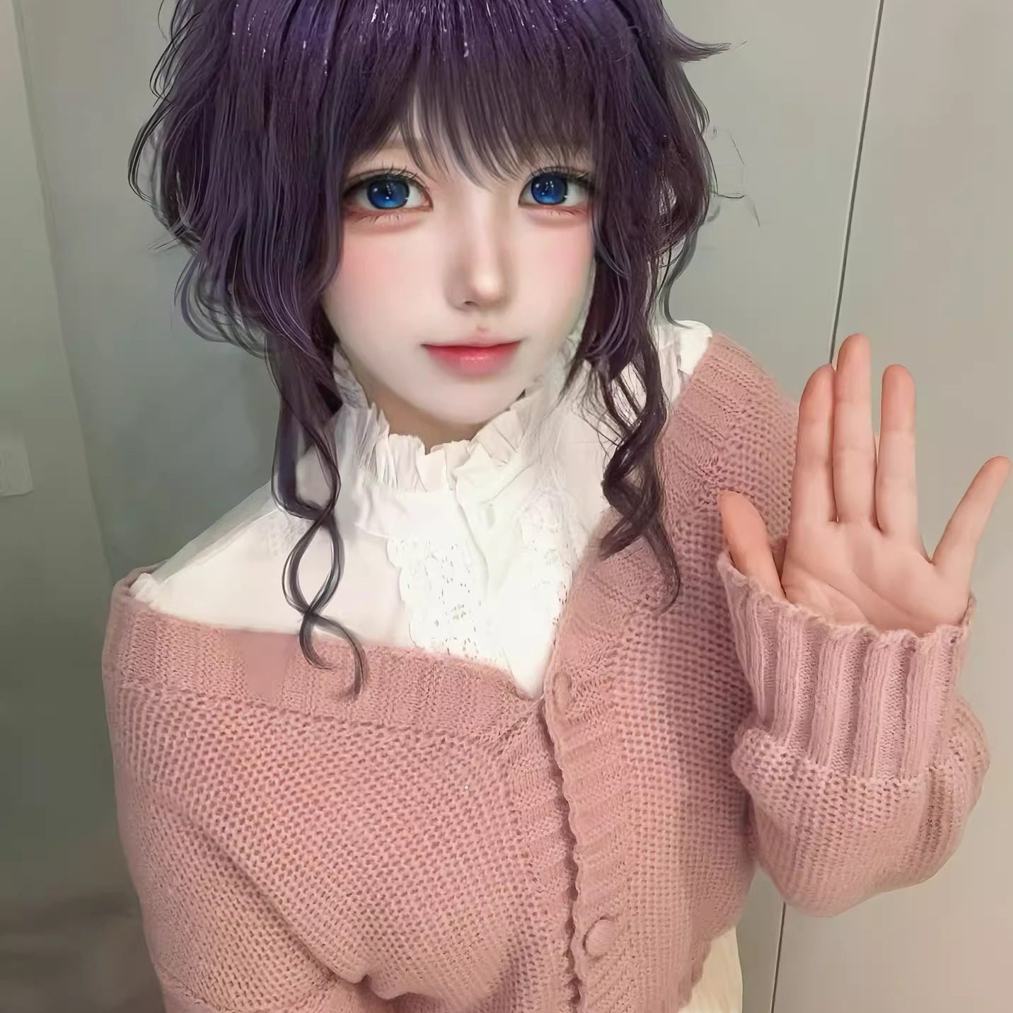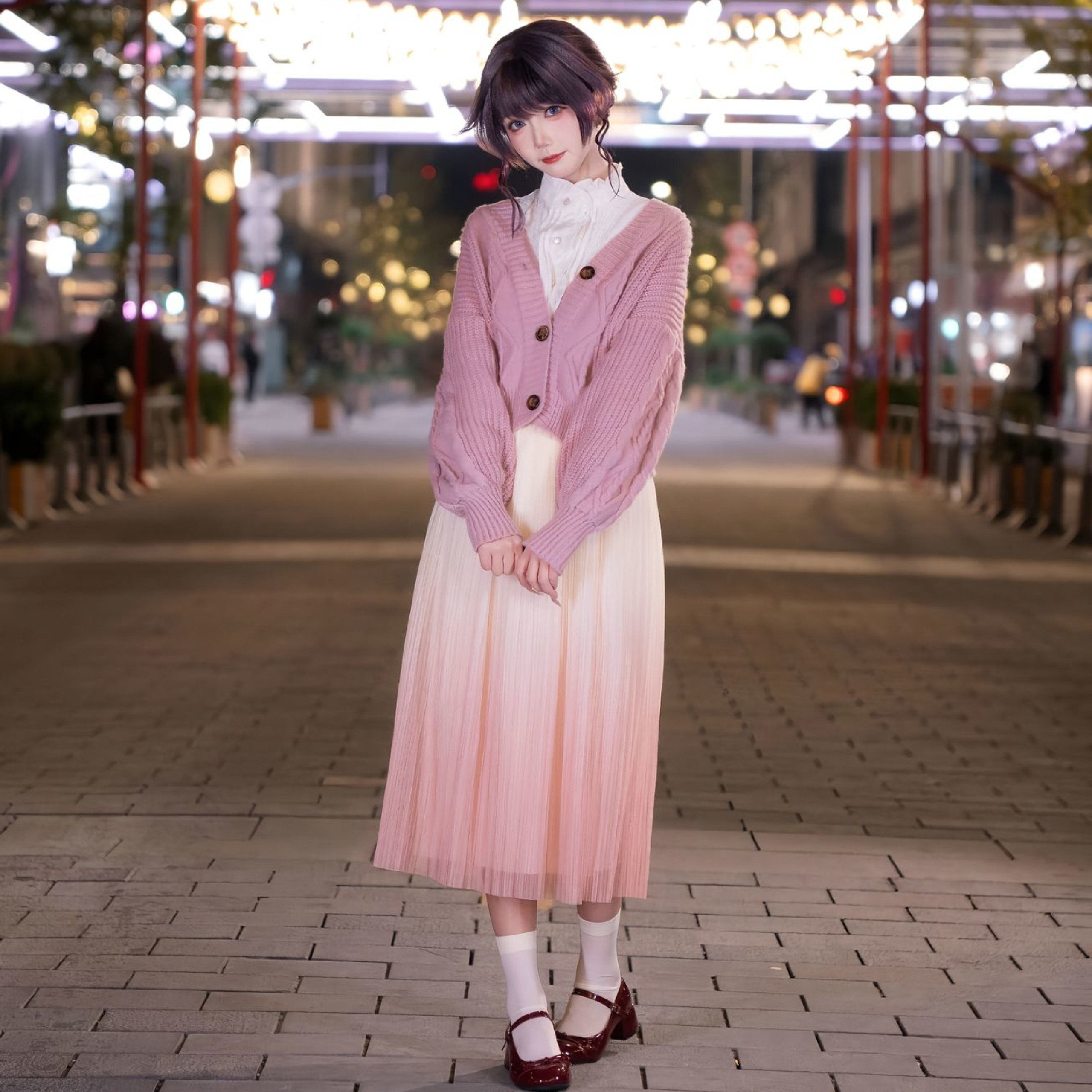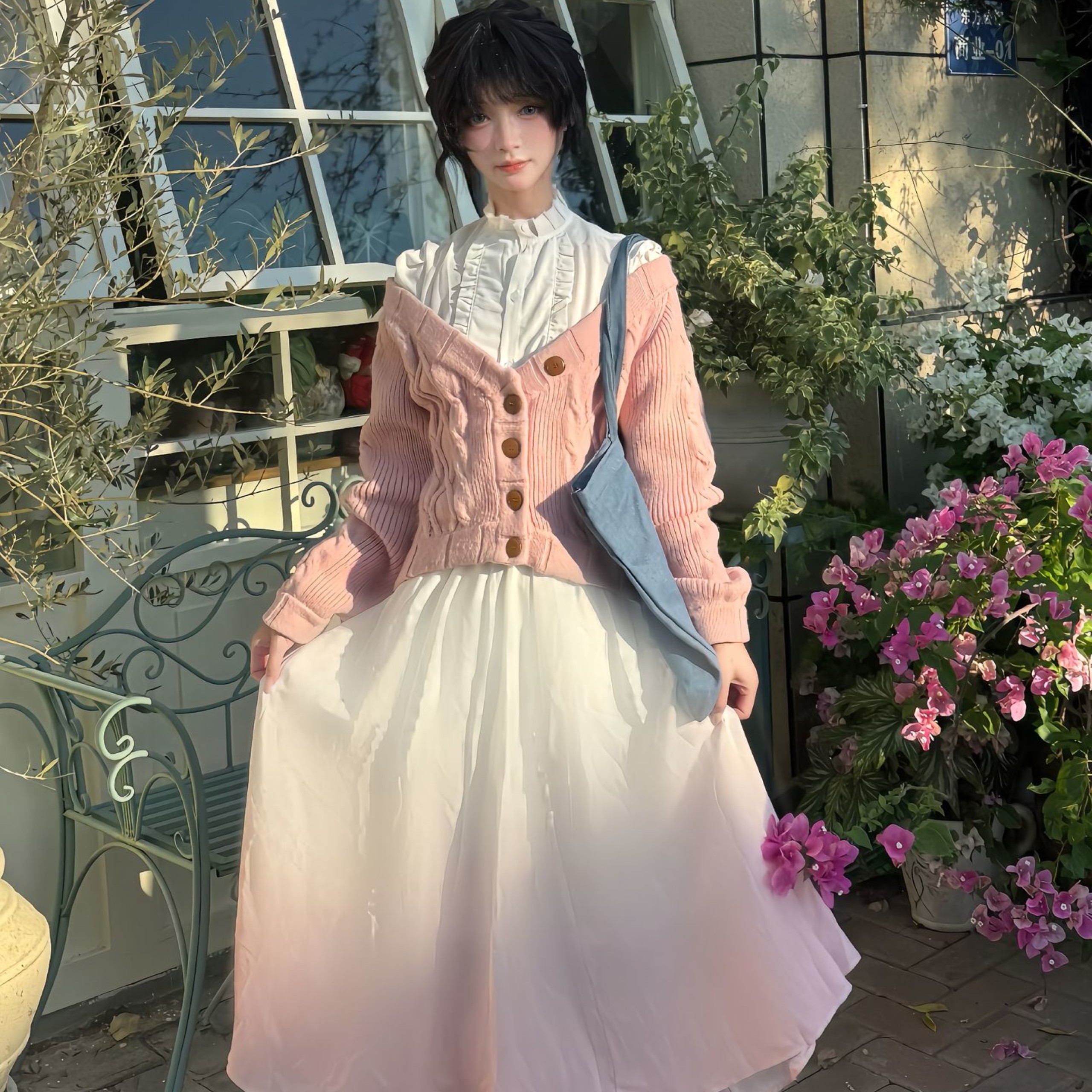 和栗薰子cos卷发粉色毛衣衬衫 渐变半身裙熏香花凛然绽放二次元