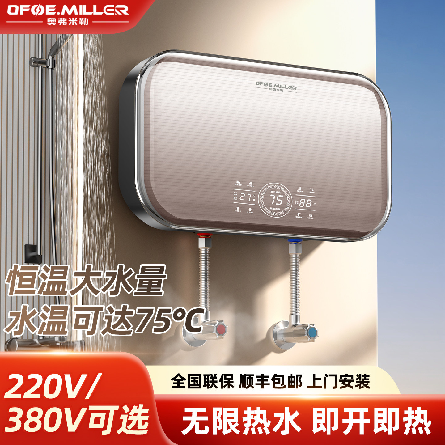 OFOE.MILLER即热式 380V商用恒温热水器大水量浴缸机 电热水器220由