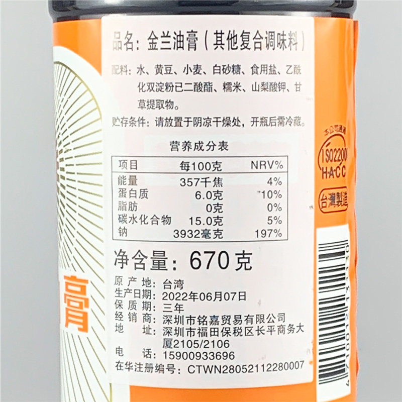 整箱批发台湾金兰油膏670g进口红烧肉卤肉饭上色老抽酱油原590ml由