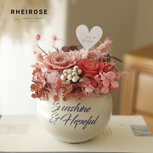 饰摆件送女友老师开业礼物 永生花真花玫瑰盆栽成品花束家居办公装