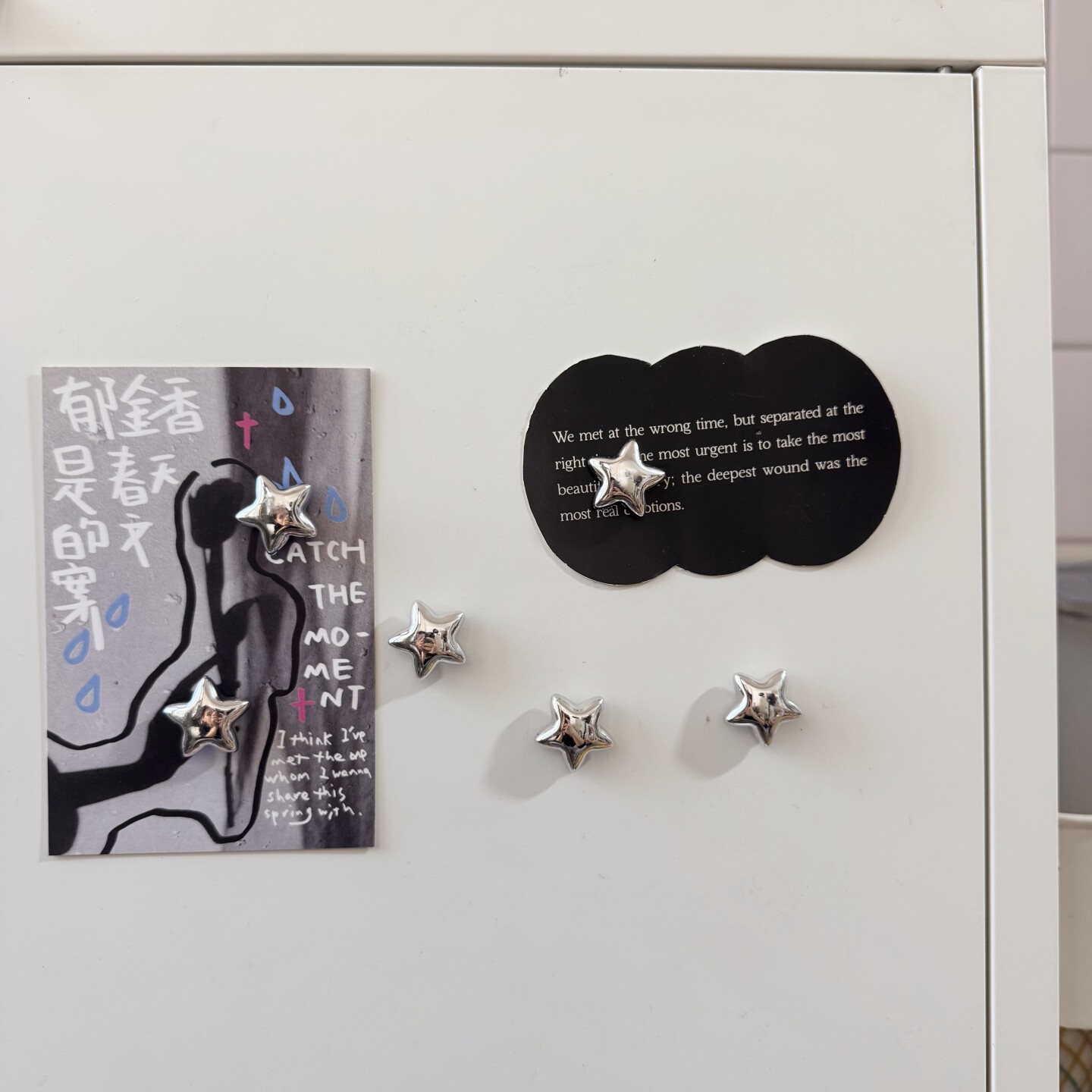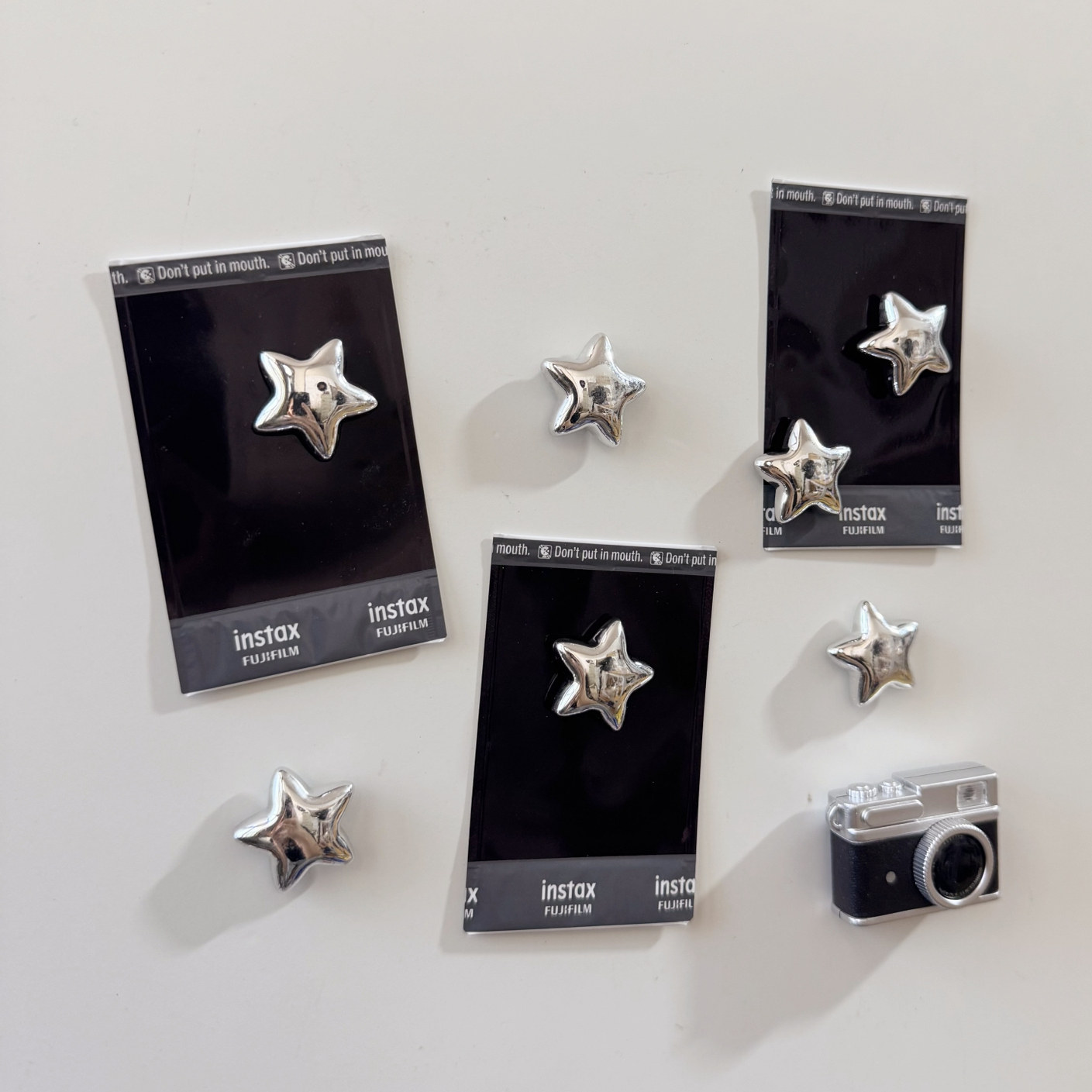 ins磁吸贴银色星星冰箱贴装 饰洞洞板固定拍立得照片 饰磁贴家居装