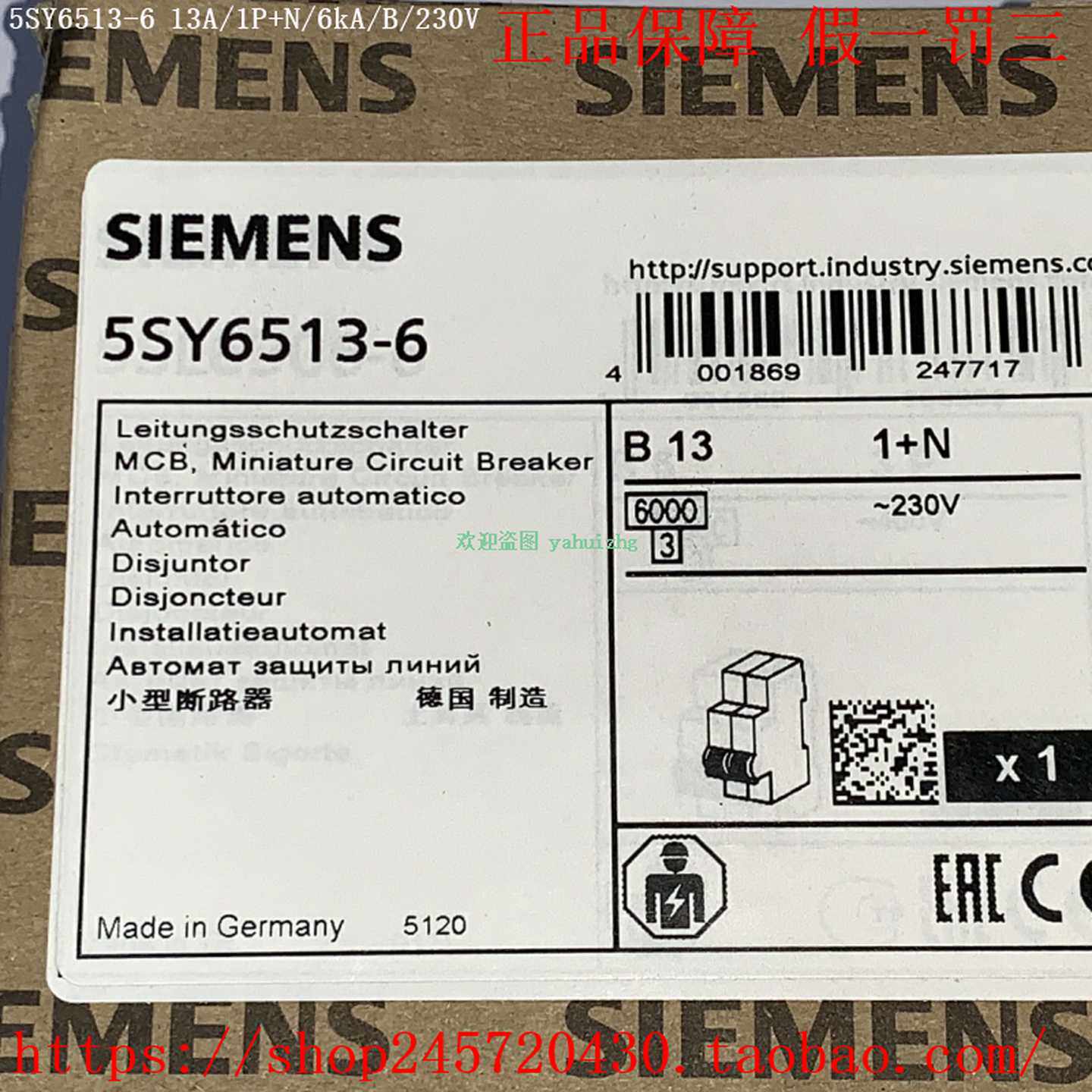 6西门子小型断路器1PN230Vac 65SY6563 5SY6550由