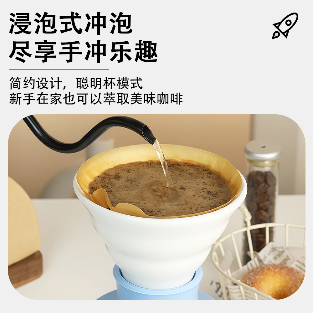 陶瓷咖啡滤杯V60平口聪明杯浸泡式 家用耐热滴滤杯 手冲咖啡套装由