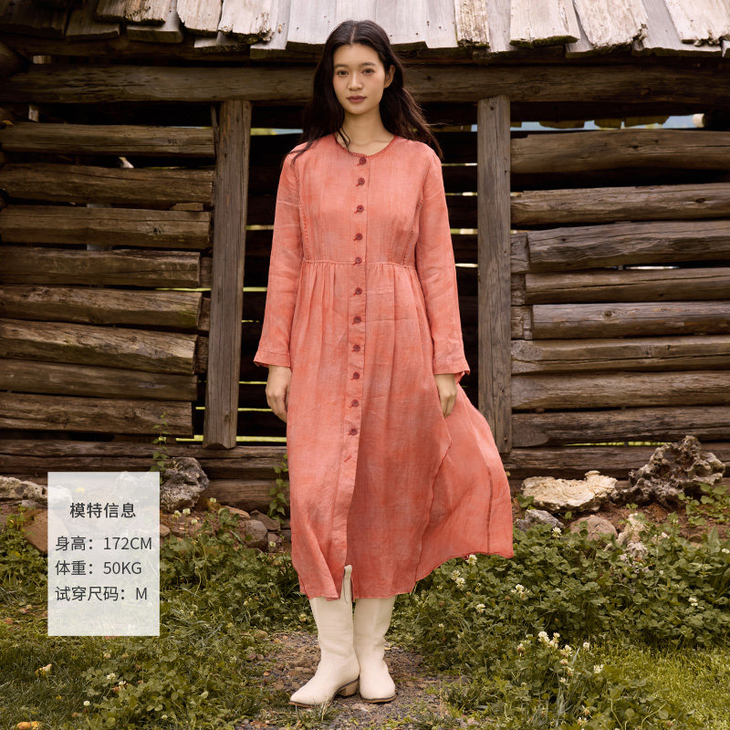 连衣裙2026年春新款 宽松大摆 苎麻炒色设计感风衣式 TALASA商场同款
