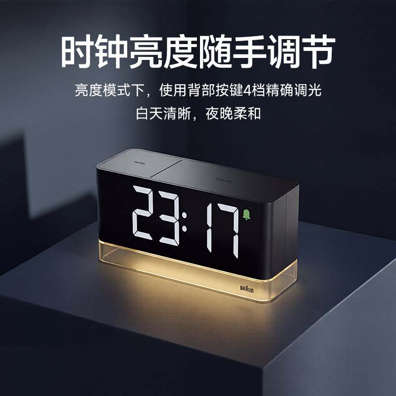 Braun博朗进口电子显示智能闹钟贪睡灯光电源线供电BC27 自营由