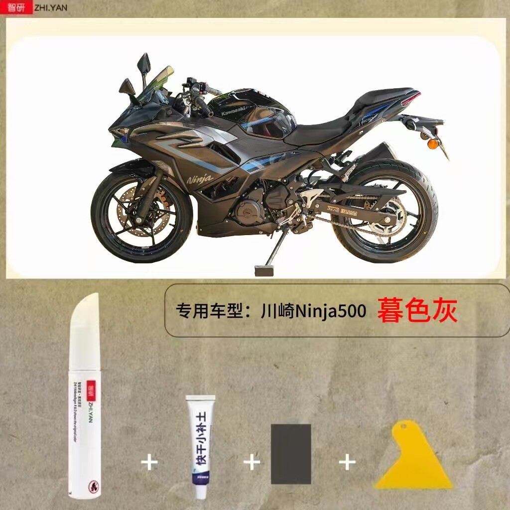 适用川崎ninja500摩托车补漆笔绿色划痕修复黑色自喷漆原厂不掉色由