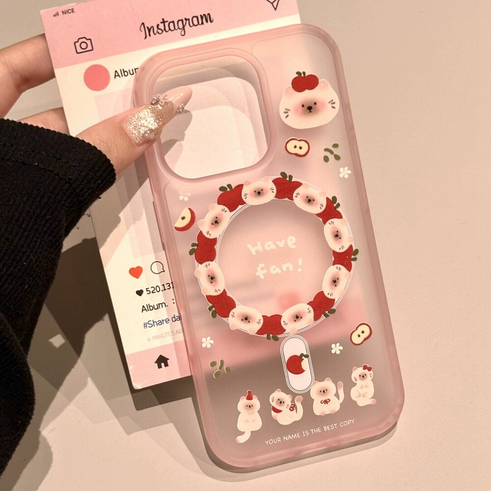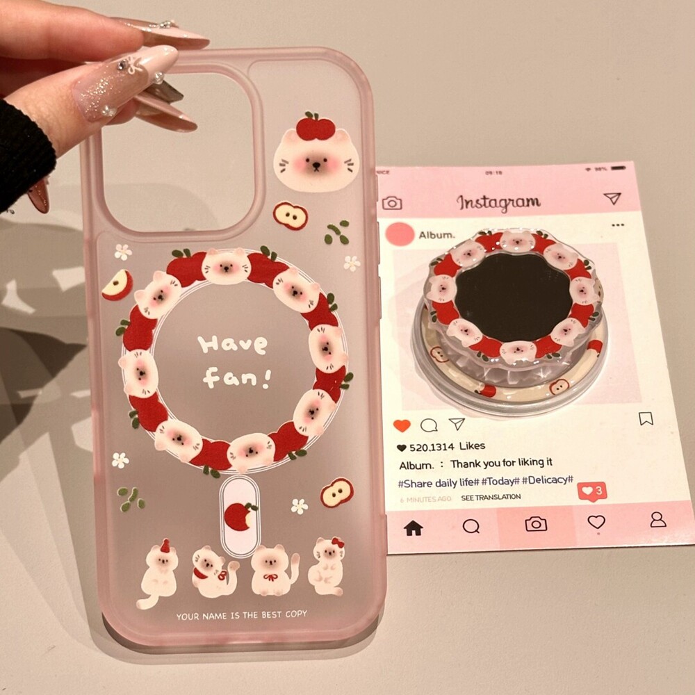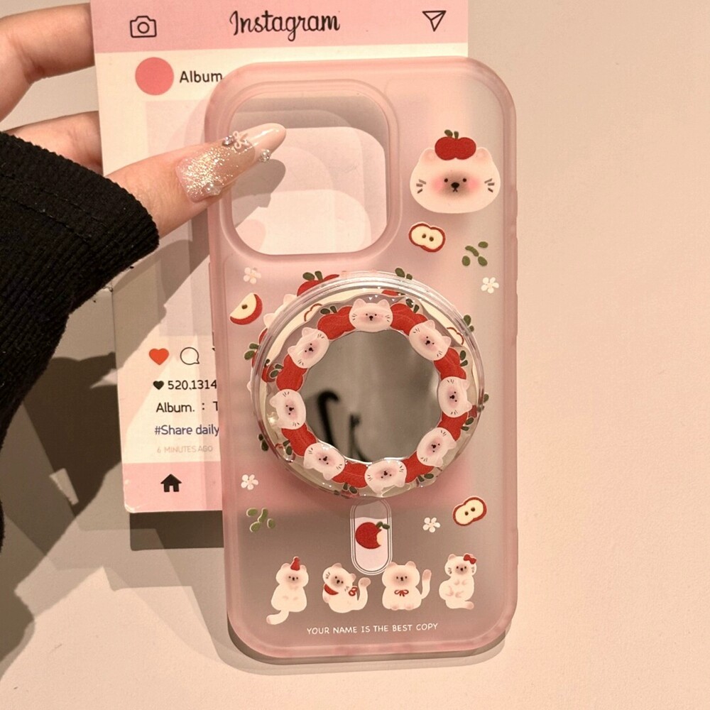 X8S A6可爱K13 A98 苹果小猫咪镜面磁吸支架适用A5pro 手机壳Reno15 A57 11F FindX9 OPPO
