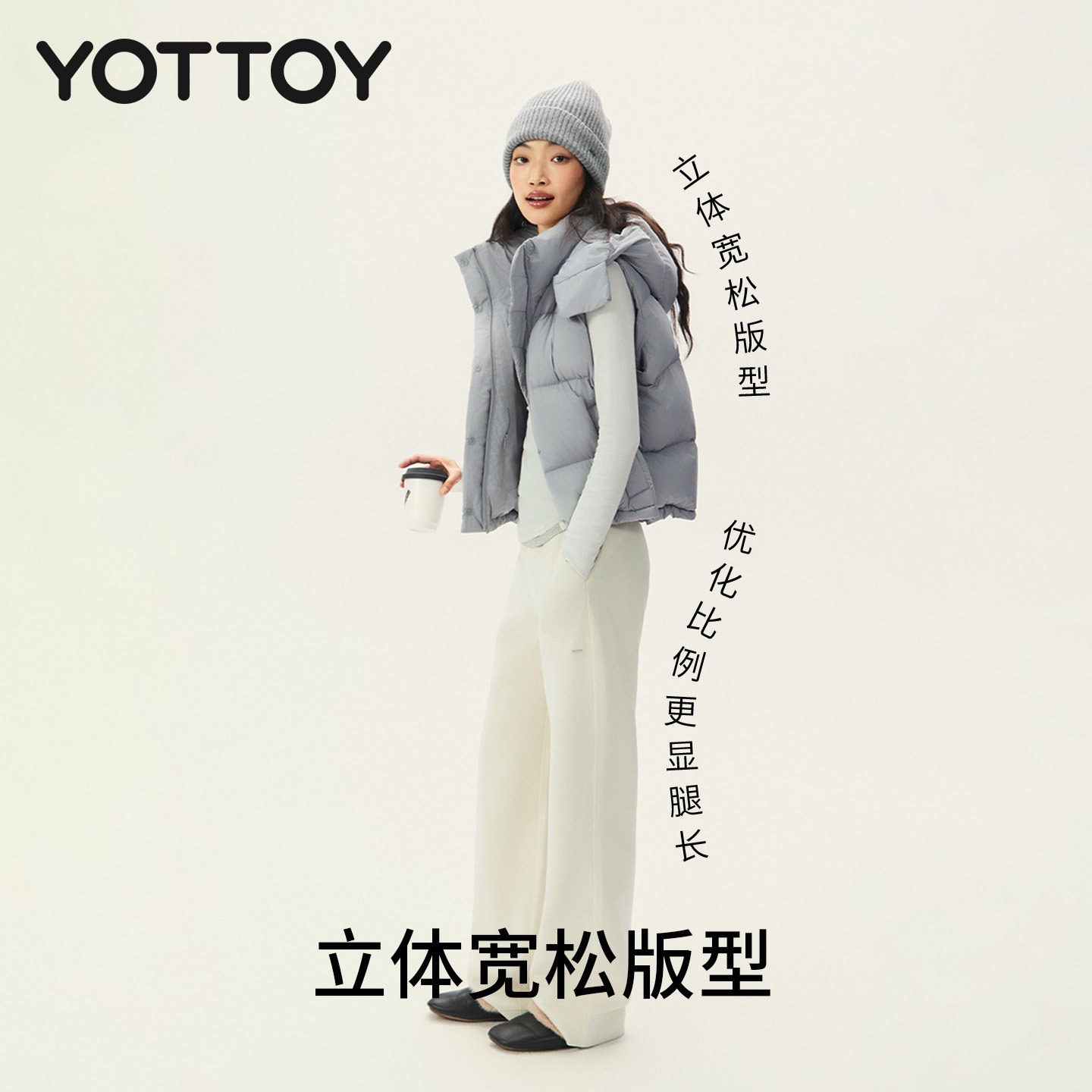 90白鸭绒云朵面包羽绒马甲女宽松轻薄保暖棉服外套连帽冬 YOTTOY由