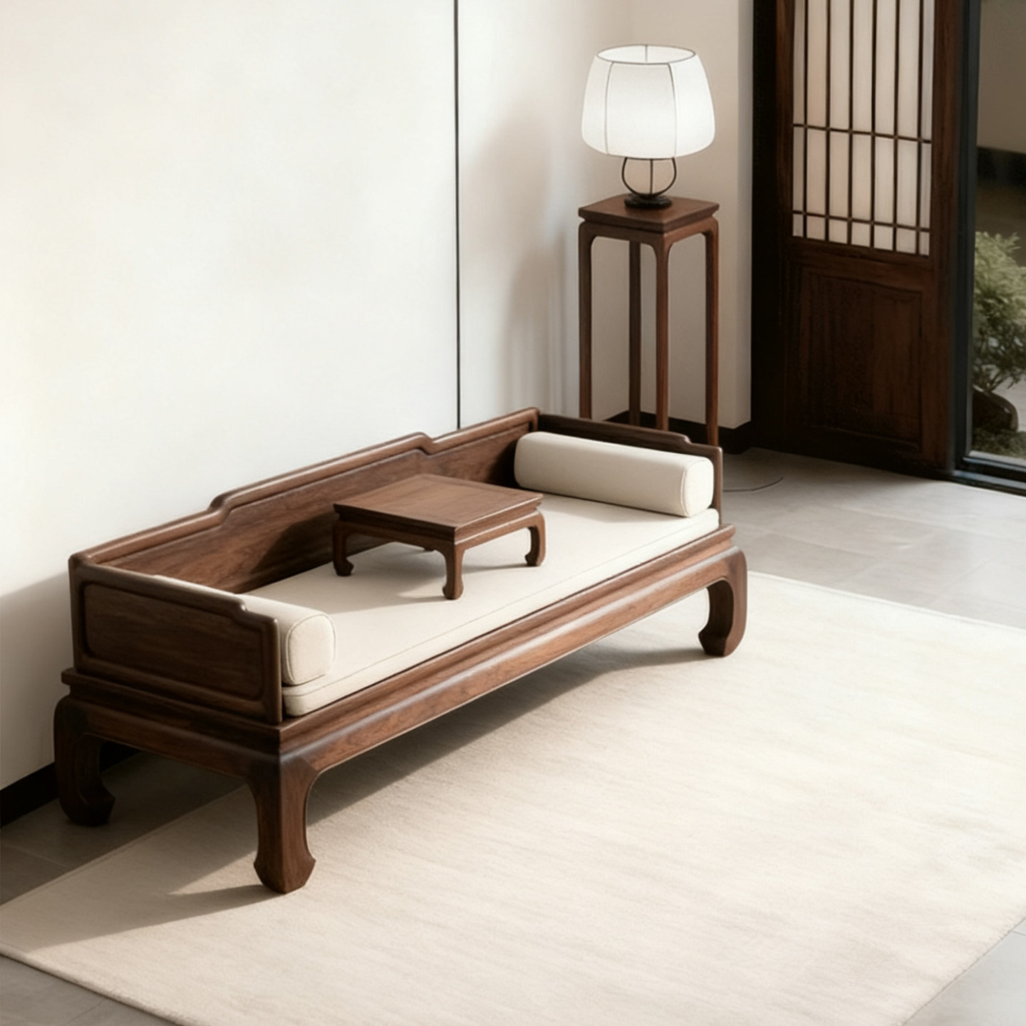 新中式 美学罗汉床 北美黑胡桃木客厅阳台小户型罗汉床沙发实木宋式