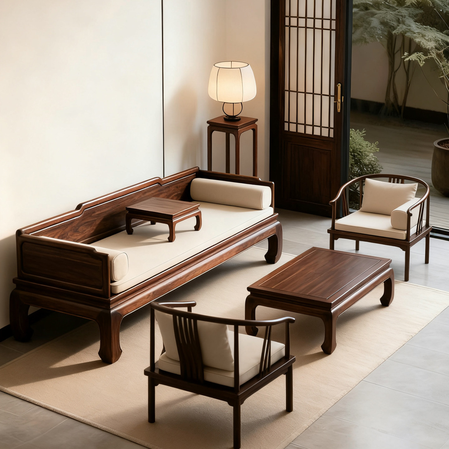 乌金木罗汉床客厅家用实木沙发床两用禅意炕几组合贵妃卧榻 新中式