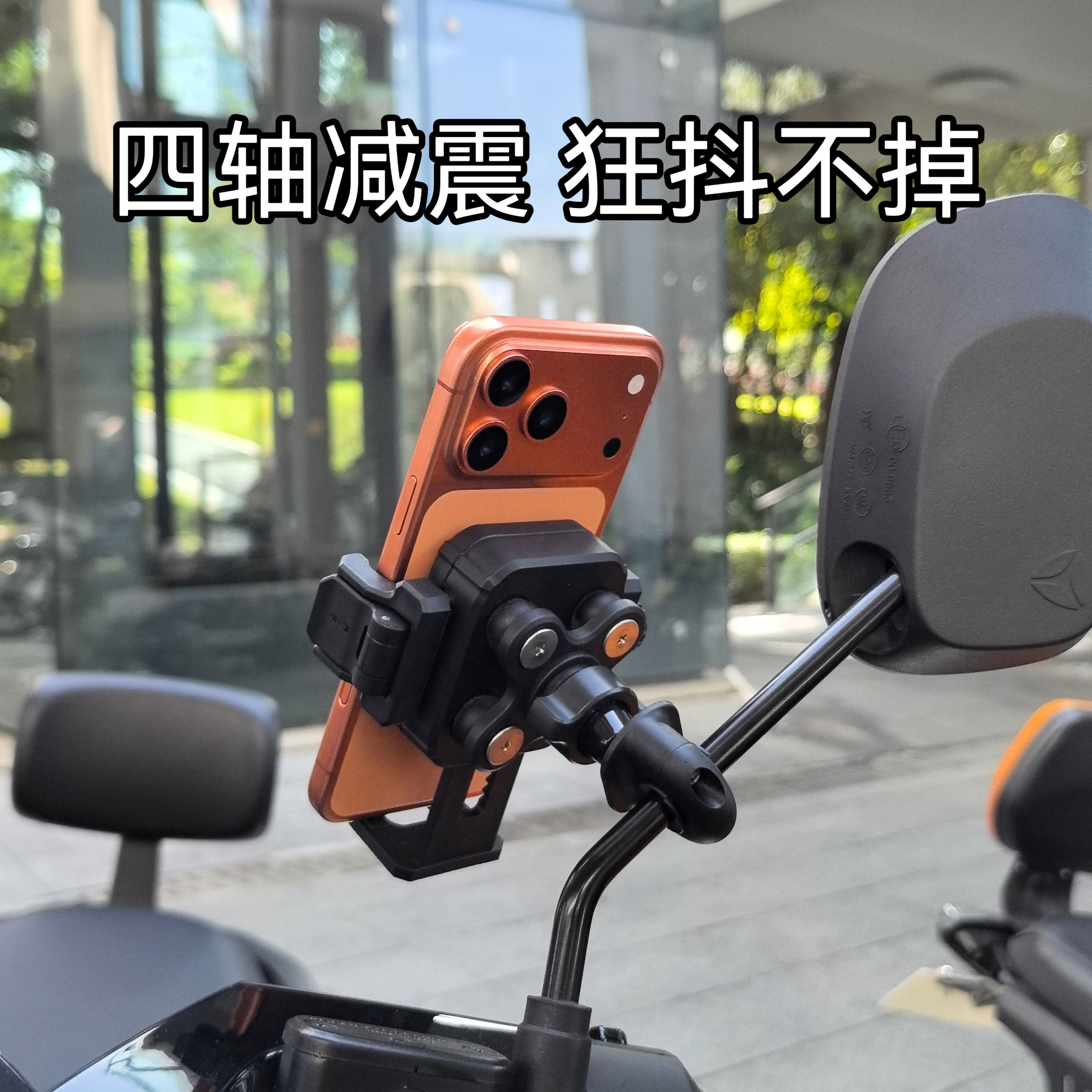 减震骑行手机支架电动摩托车外卖骑手导航电瓶车专用加厚耐用后视镜便捷防震防抖固定支撑 新款