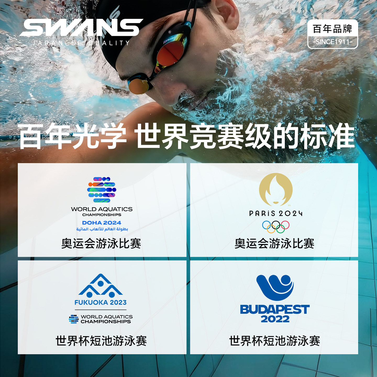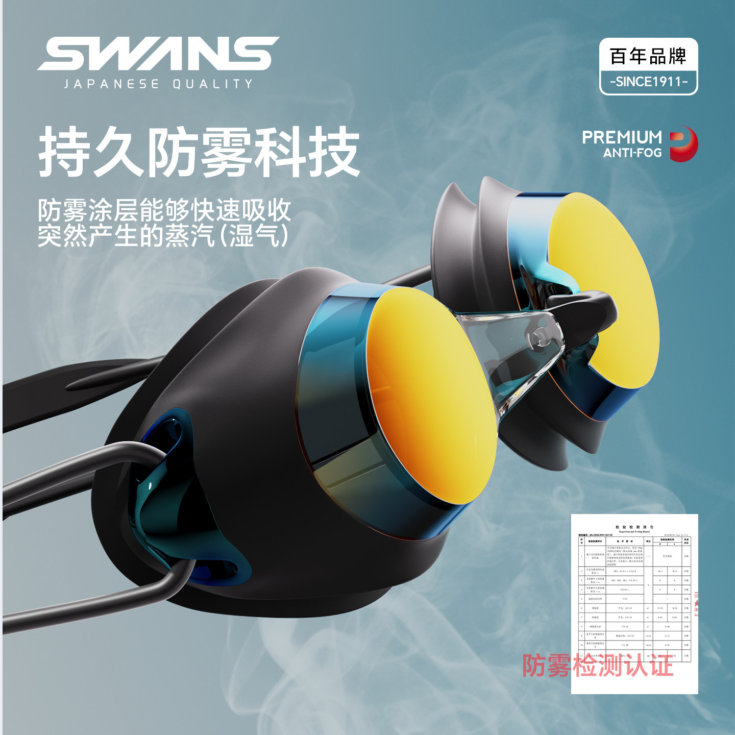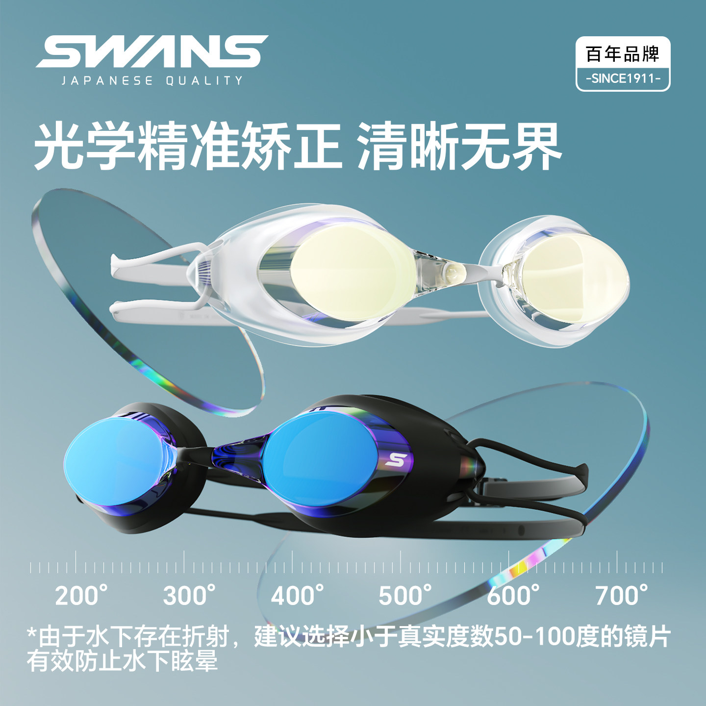 swans泳镜女士高清防水防雾近视带度数男款 专业游泳眼镜 泳帽套装